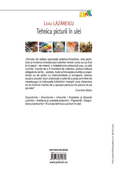 „Dincolo de atitea speculatii estetico-filosofice, arta pictorului si misterul amestecului culorilor ramin ceea ce au fost la inceput, de milenii, o indeletnicire artizanala sau, cu alte cuvinte, inainte de a fi manifest de cafenea, pictura trebuie obligatoriu sa fie... pictata. Autorul foloseste eruditia si experienta sa de pictor cu meticulozitate si pricepere, staruie asupra acestei laturi artizanale a artei de a picta amintind de mestesugul si mijloacele batrinilor maestri care obisnuiau sa se inchine inainte de a apropia pensula de pinza de pe sevalet.” (Corneliu Baba)