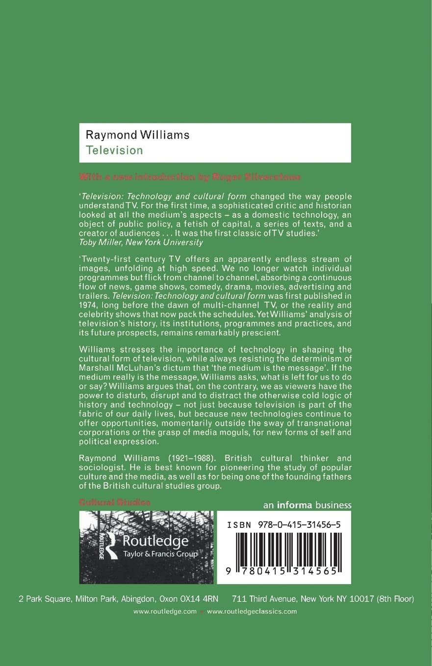 Television: Technology and Cultural Form was first published in 1974, long before the dawn of multi-channel TV, or the reality and celebrity shows that now pack the schedules. Yet Williams' analysis of television's history, its institutions, programmes and practices, and its future prospects, remains remarkably prescient.