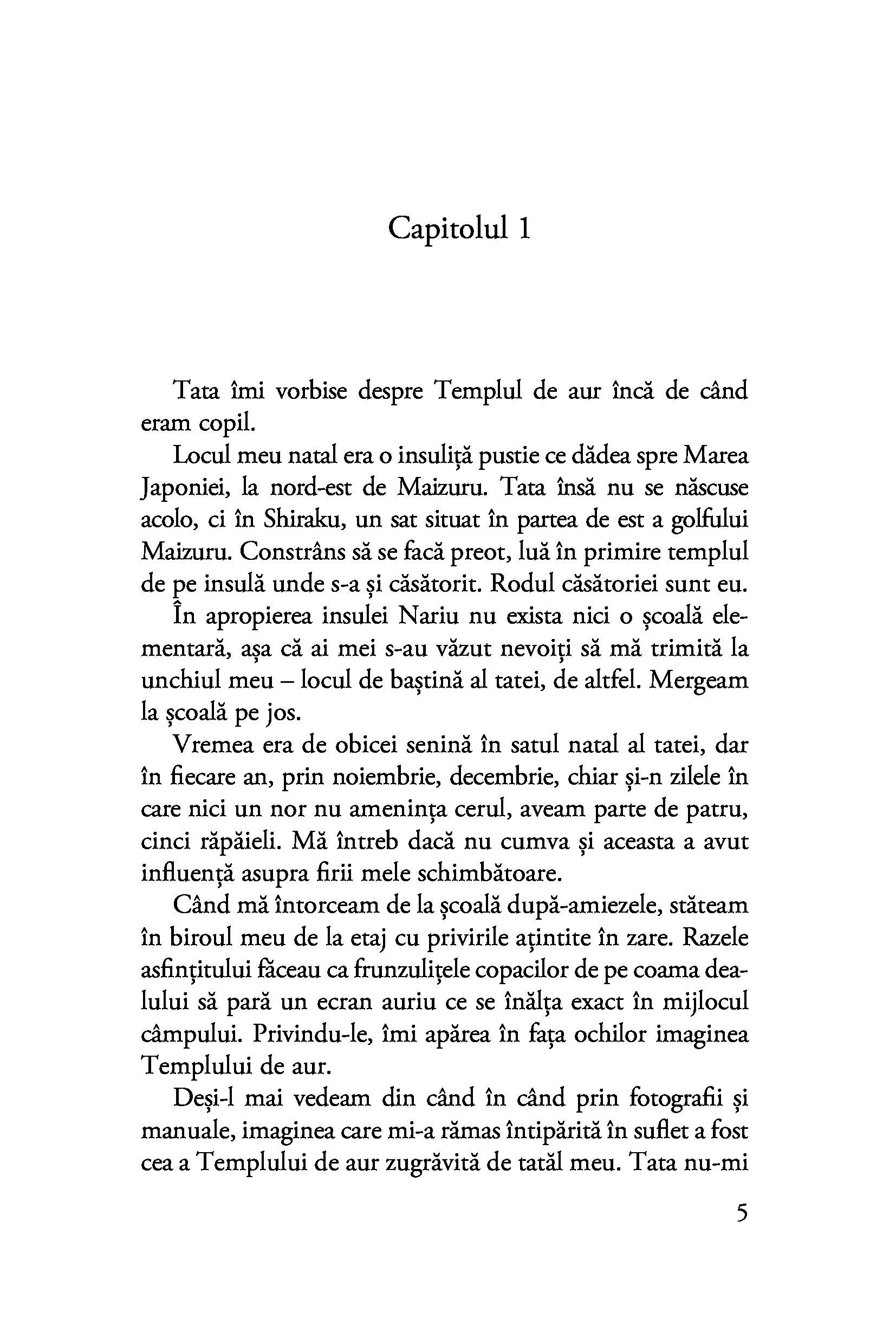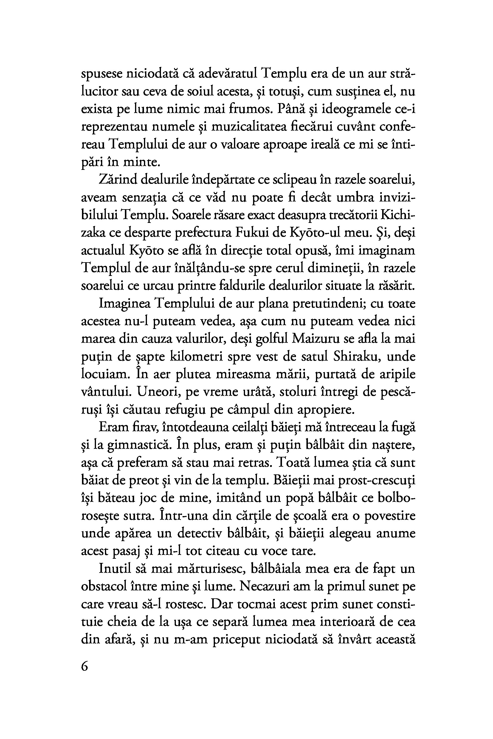 În fața instanței, acuzatul declară că urăște frumusețea. Fascinat de fapta și de justificarea nemaiauzite, Mishima încearcă să înțeleagă ce se ascunde în spatele acestui răspuns: frumusețea imuabilă a templului vechi de secole aruncă în derizoriu fericirea efemeră și imperfectă a muritorilor, amintindu-le că lumea trecătoare nu le poate oferi nimic pe măsura năzuințelor lor.