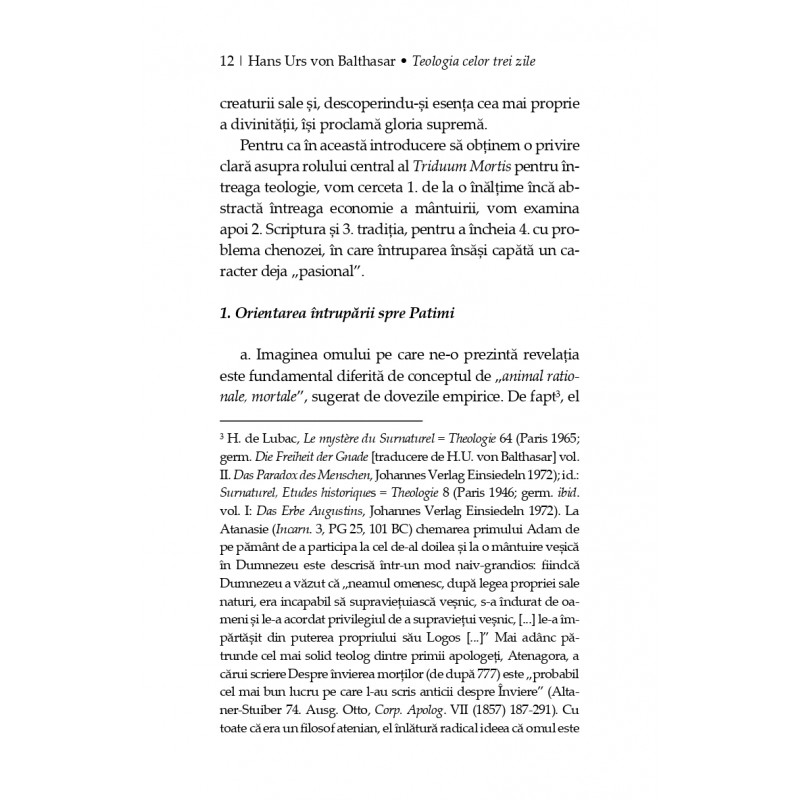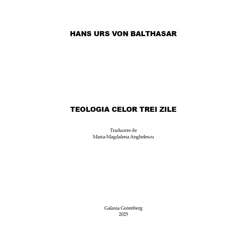 Balthasar depăşeşte interpretările strict liturgice ale acestor trei zile, propunând o înțelegere teologică profundă, în care Triduumul devine locul culminant al revelației iubirii răscumpărătoare.