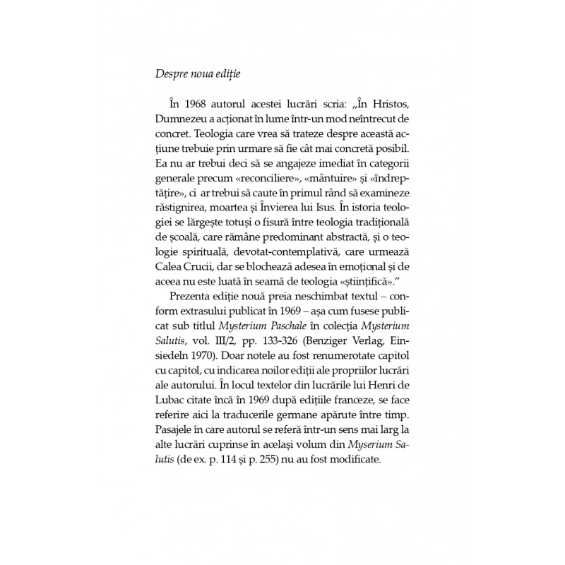 În lucrarea sa, Hans Urs von Balthasar dezvoltă o reflecție profundă asupra misterului celor trei zile sacre - Vinerea Mare, Sâmbăta Mare și Duminica Învierii - oferind o viziune teologică unificatoare asupra pătimirii, morții și învierii lui Hristos.