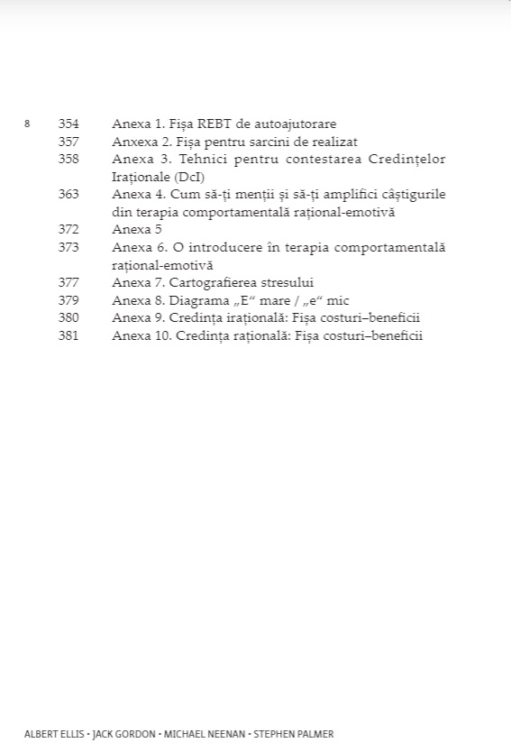 Albert Ellis, psiholog şi psihoterapeut, fondatorul terapiei comportamentale raţional-emotive (REBT), a scris peste 80 de cărţi. În anul 2013, Asociaţia Psihologilor din America i-a conferit postum Premiul pentru contribuţii deosebite în domeniul psihologiei. De acelaşi autor, la Editura Trei au mai apărut: Cum să trăim alături de un "nevrotic" acasă şi la locul de muncă, Cum să te simţi mai bine, să te faci mai bine, să rămâi mai bine. Terapie profundă de autoajutorare pentru emoţiile tale, Evoluția unei revoluții, Cum să-ți controlezi furia înainte de a te controla ea pe tine şi Sex fără vinovăţie în secolul XXI.