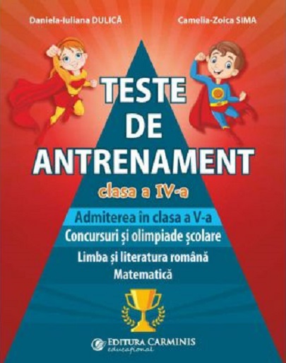 Auxiliarul „Teste de antrenament“ se adreseaza elevilor de clasa a IV-a, care vor sustine proba de admitere in clasa a V-a la colegiile nationale sau care doresc sa se pregateasca in vederea participarii la olimpiadele si concursurile scolare. Este structurat in 14 teste, ce contin itemi corespunzatori disciplinelor limba romana si matematica, spre intampinarea eventualelor dificultati in exersarea subiectelor propriu-zise.