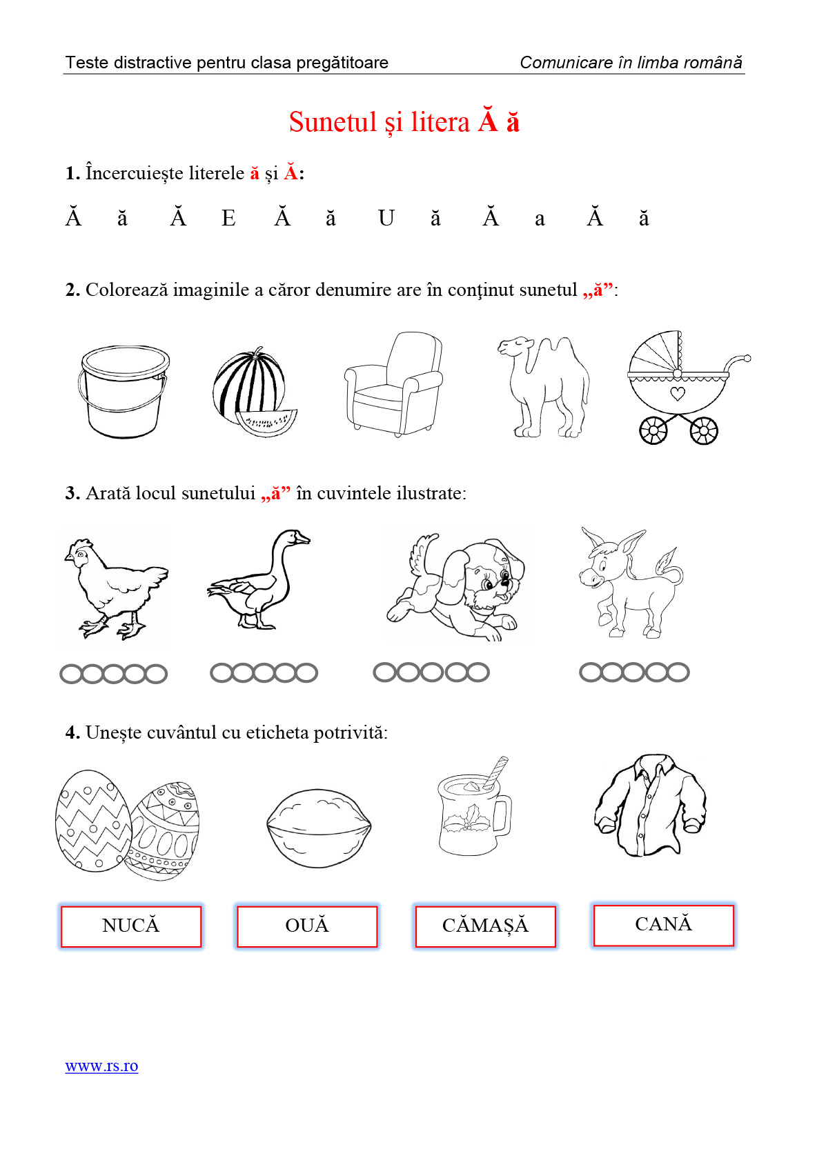 - teste distractive pentru fiecare sunet si litera a alfabetului;