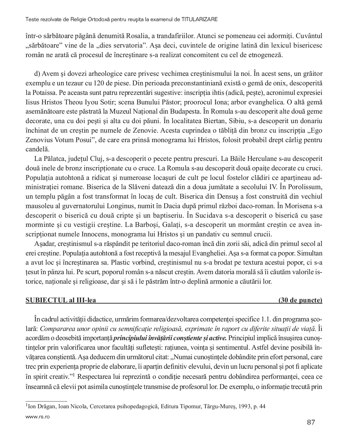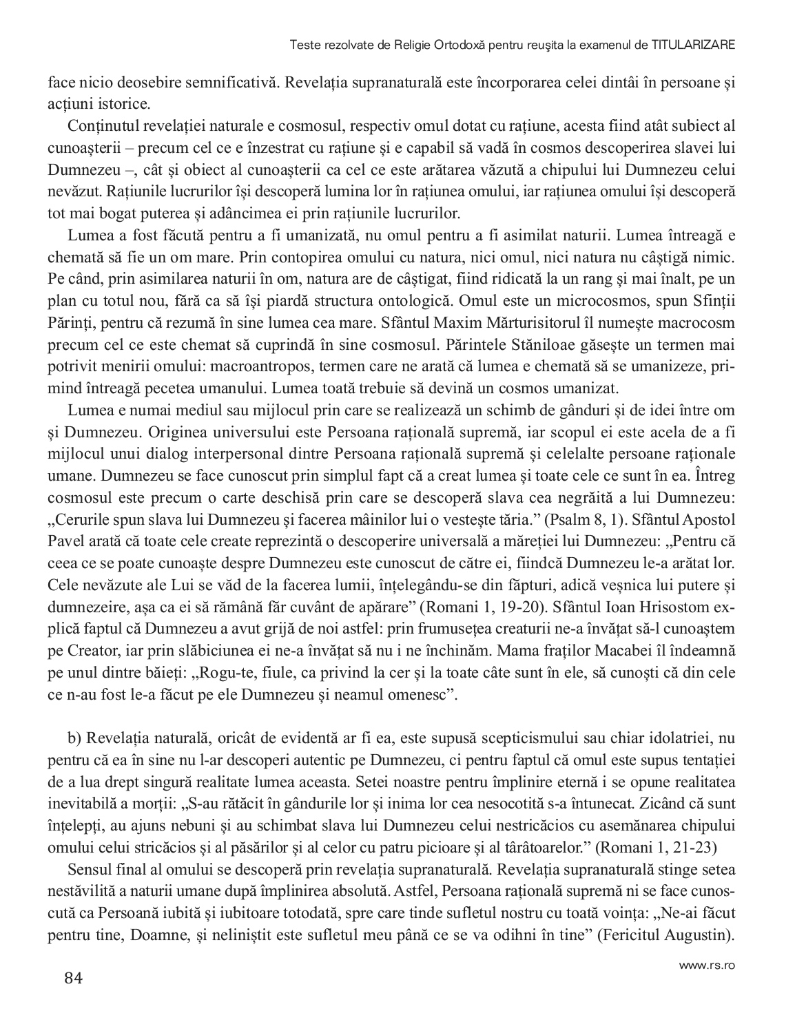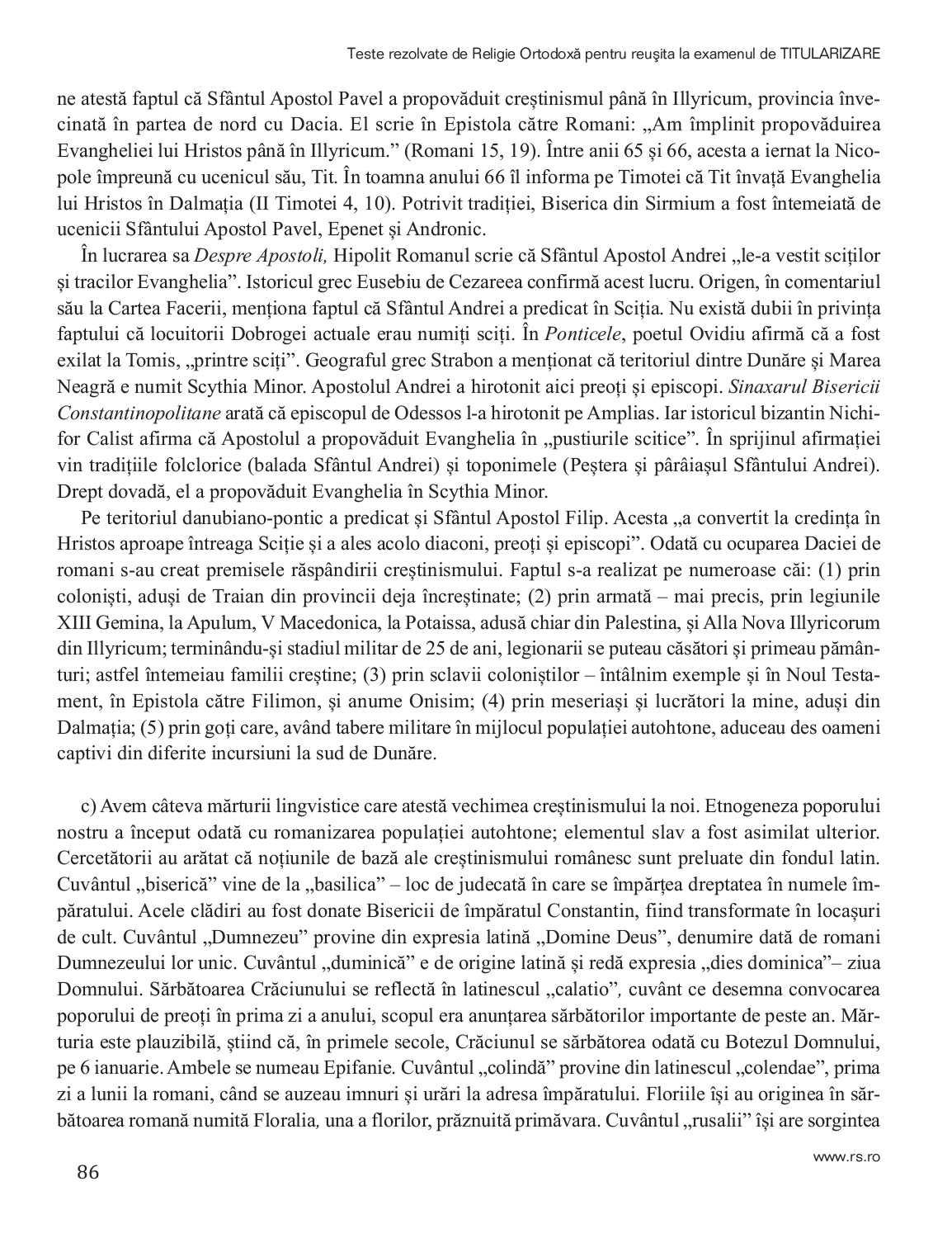 Teste rezolvate de religie ortodoxa pentru examenul de titularizare