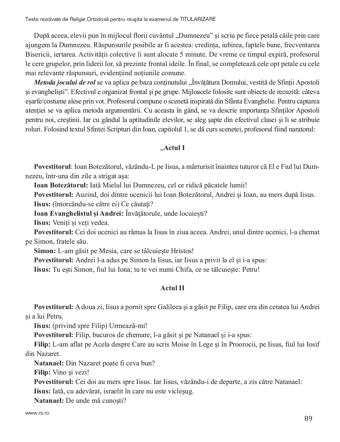 * Beneficiati de experienta si cunoasterea unui cadru didactic familiarizat cu problematica examenului de titiularizare Religie ortodoxa!
