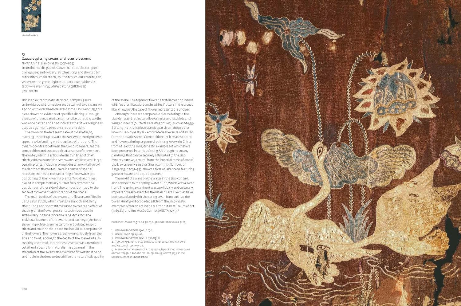 A series of engaging essays highlights the significant features of the N2H collection—exploring the samites of Central Asia with their luxurious silk and intricately woven animal and geometric patterns; studying the exquisite embroideries of the Liao dynasty up close; and examining the imperial textiles of the Ming and Qing dynasties, when power and prestige were expressed through sumptuous court costume.