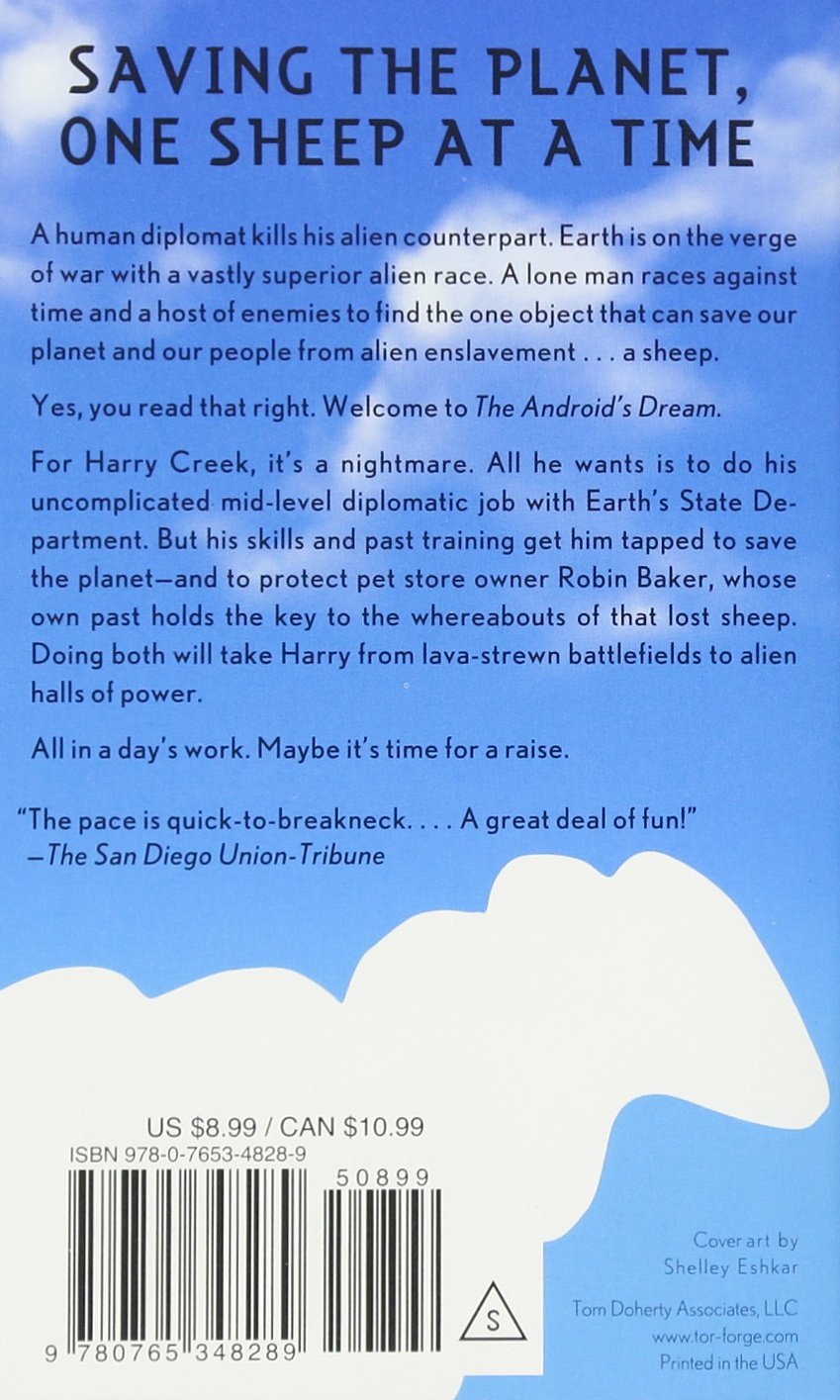 A human diplomat creates an interstellar incident when he kills an alien diplomat in a most . . . unusual . . . way. To avoid war, Earth's government must find an equally unusual object: a type of sheep ("The Android's Dream"), used in the alien race's coronation ceremony.