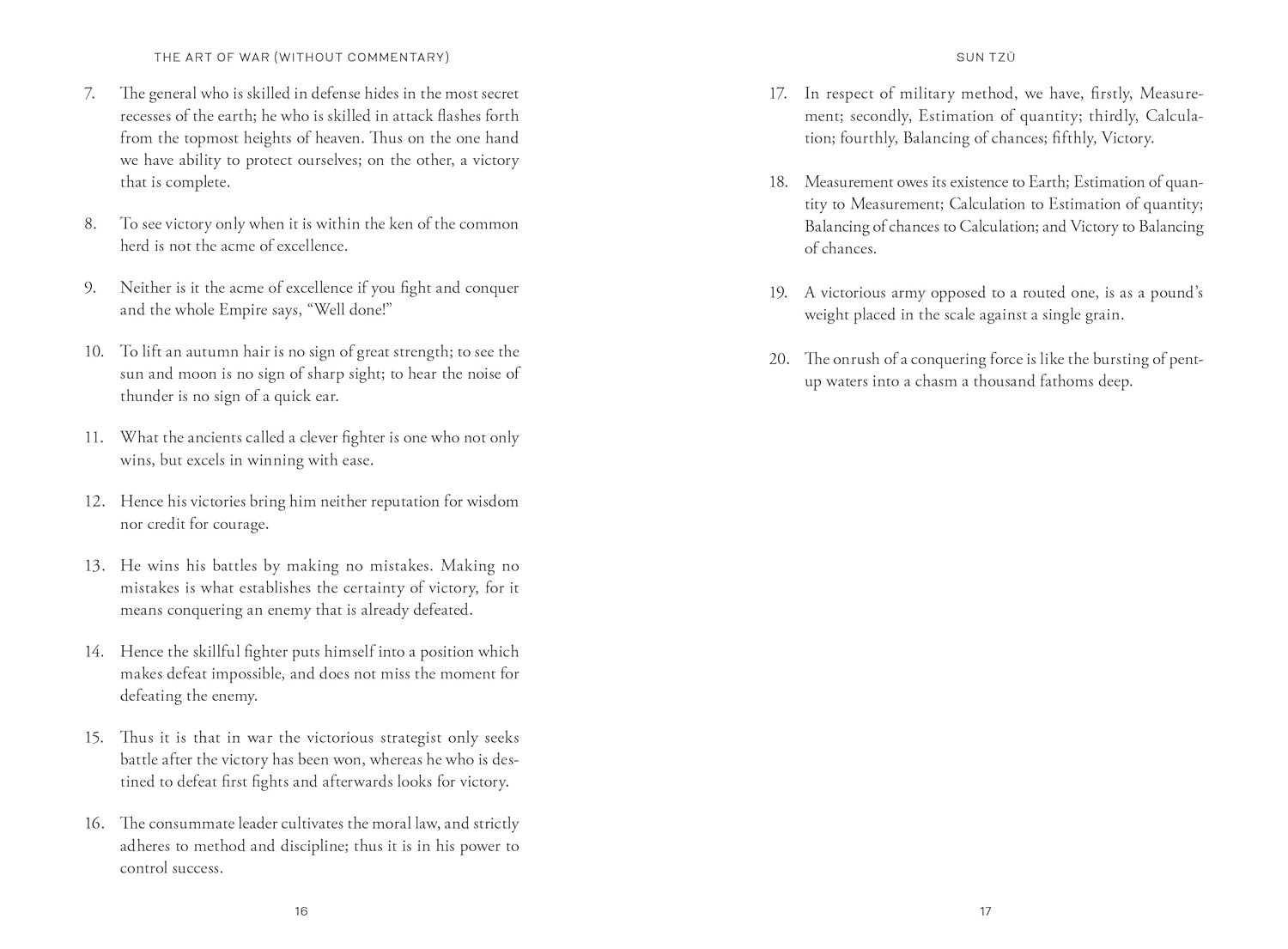 More than two thousand years old, this classic of Chinese philosophy lays out a systematic, rational approach to tactics and strategy that leaders worldwide have applied not only to the military, but also to business, law, martial arts, and sports. This elegant edition uses Lionel Giles's classic translation and stands apart for its gorgeous design. Giles's extensive annotations and commentary on Sun Tzu's aphorisms and proverbs are also included.