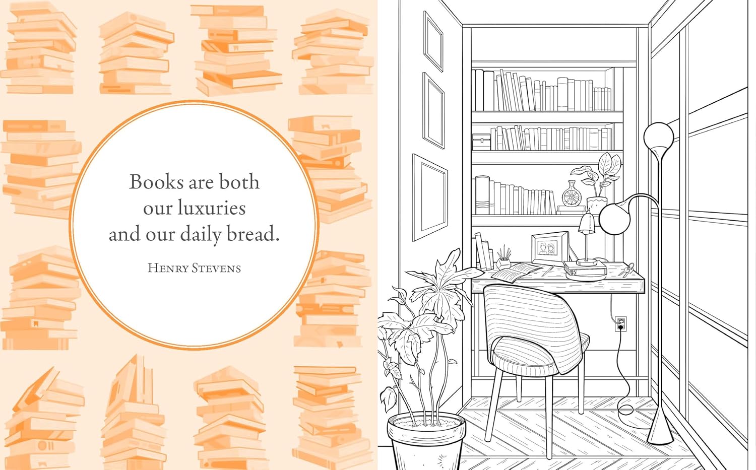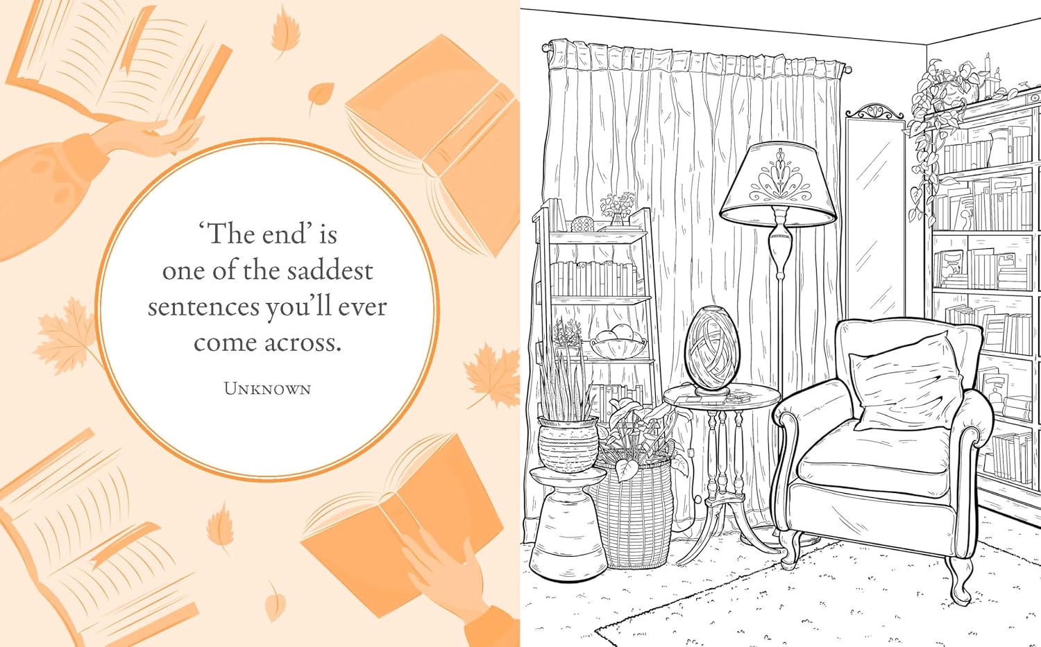 Whether your own home library consists of piles of books all over the floor, a single shelf of favourite titles or a perfectly ordered room with everything in its place, you'll enjoy this wonderful colouring book.