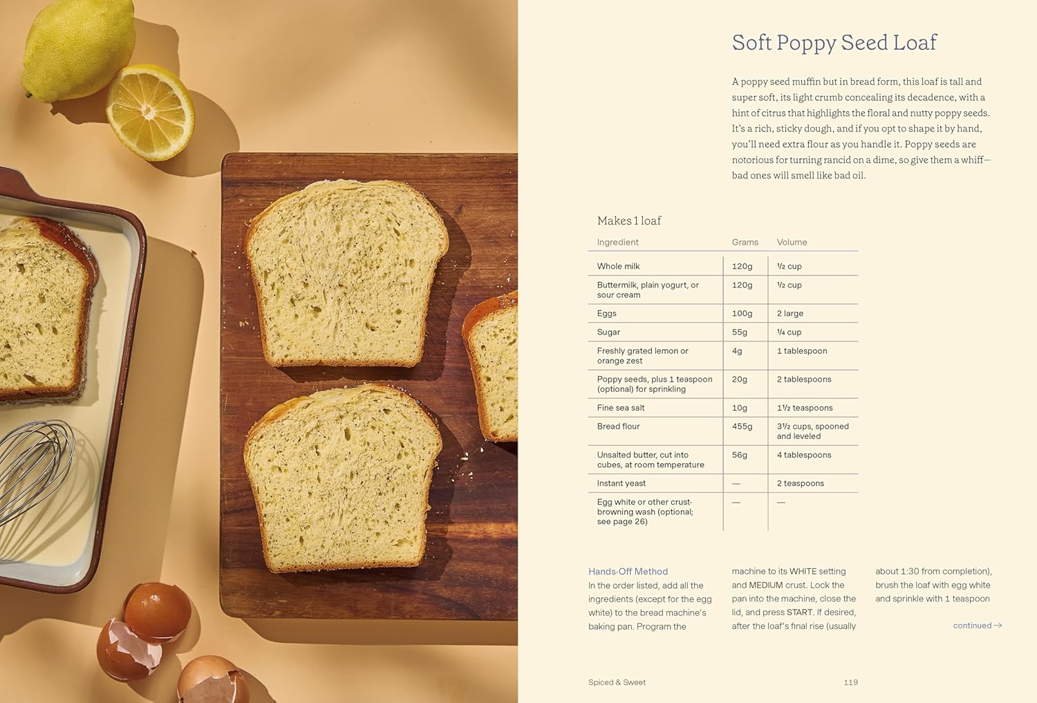 Buttery Brioche Japanese Milk Bread Herby Cottage Cheese Loaf Yeasted Maple Cornbread Gingery Sweet Potato Loaf Cheesy Beer Bread Fragrant Quinoa Snacking Cake Each recipe contains a "faster" and a "slower" method: The fast utilizes the machine's presets (just throw everything into your bread machine and let it work its magic), while the slower isolates the kneading and the baking functions to create bread with more developed flavor and better structure for not much extra work.