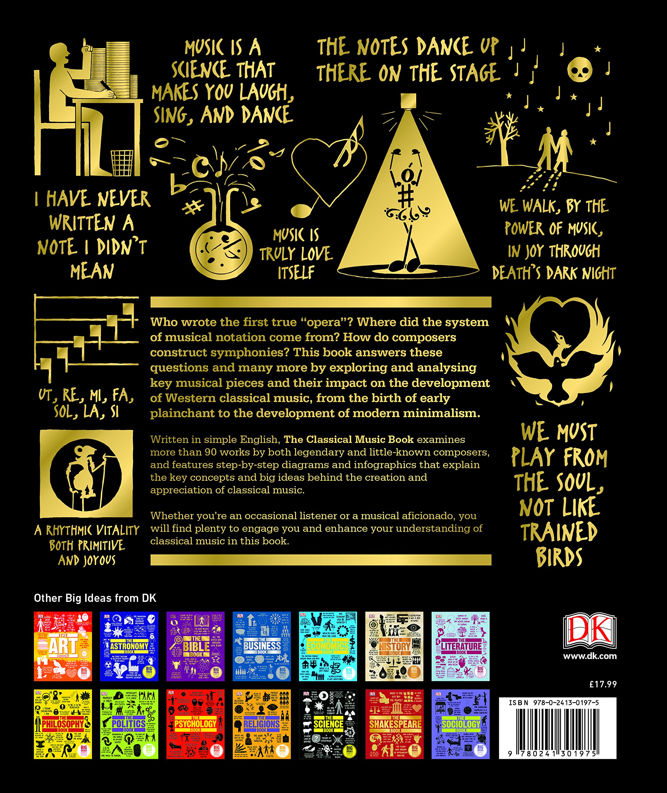 From Mozart to Mendelssohn, this comprehensive guide to classical music history and classical music biography is the perfect latest addition to the bestselling Big Ideas series. Easy to understand and clear to follow, this history of classical music explores and explains music theory and the impact of seminal pieces, while also providing fascinating stories about the lives of crucial composers and performers. Including an insightful foreword by Katie Derham, The Classical Music Book analyses over 90 works by famous composers. From Thomas Tallis in the early period to baroque masters like Bach and Handel, to the classical genius of Beethoven and Wagner and beyond to the modern day, The Classical Music Book explores the key ideas underpinning the world's greatest classical compositions and musical traditions, and defines their importance to the musical canon, placing them into their wider social, cultural, and historical context. The unique approach to the subject makes this book the perfect classical music guide for everyone. Regardless of whether you are relatively new to the subject and want to learn or if you are a classical music aficionado, there is plenty to discover in The Classical Music Book.