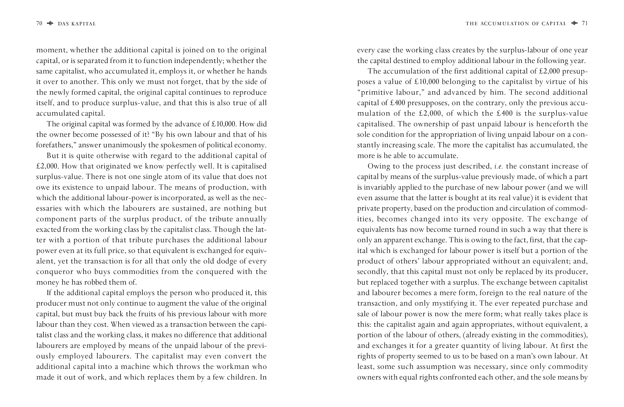 After being exiled to London, Marx published the first part of Das Kapital, a theoretical text that argues that capitalism will create greater and greater division in wealth and welfare and ultimately be replaced by a system of common ownership of the means of production. After Marx's death, Engels completed and published the second and third parts from his colleague's notes.