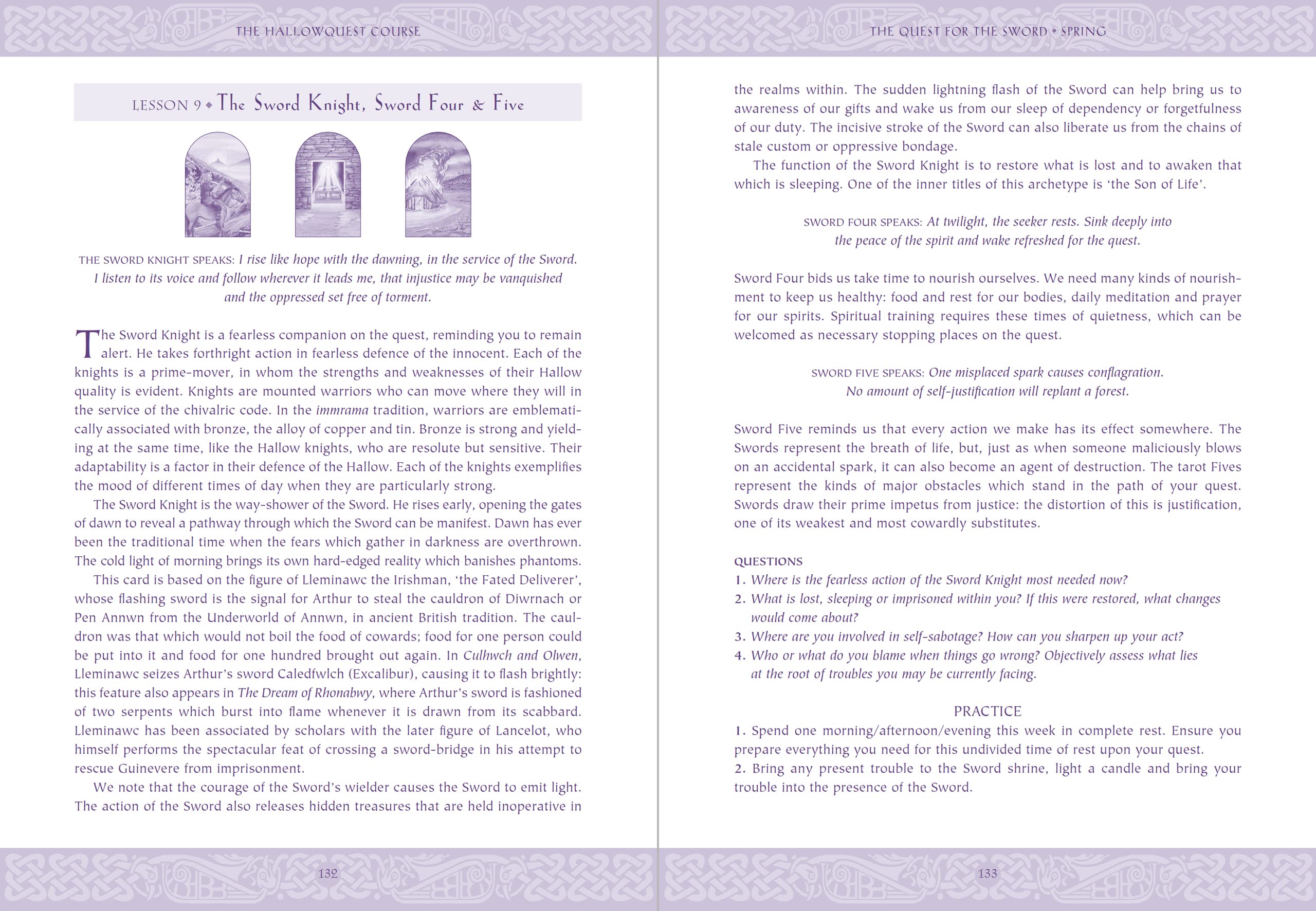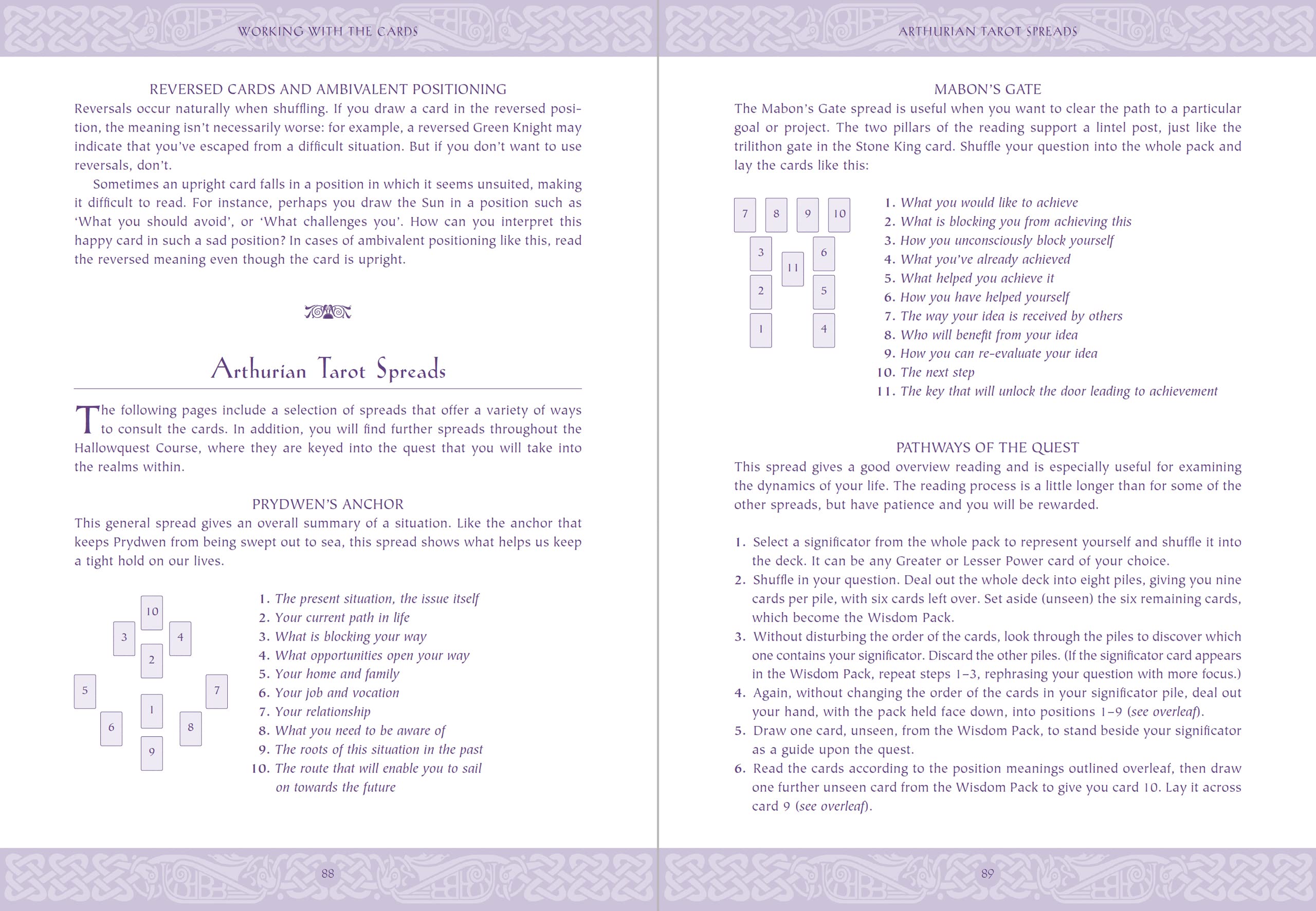 By following the seasonal quest for the Hallows - the ancient treasures of the Goddess of the Land - you discover the spiritual empowerments of your soul's purpose. Meditate on the suits of Sword, Spear, Grail and Stone to assimilate the teachings of the cards and establish your own access to the realms within the timeless kingdom of King Arthur and his court.