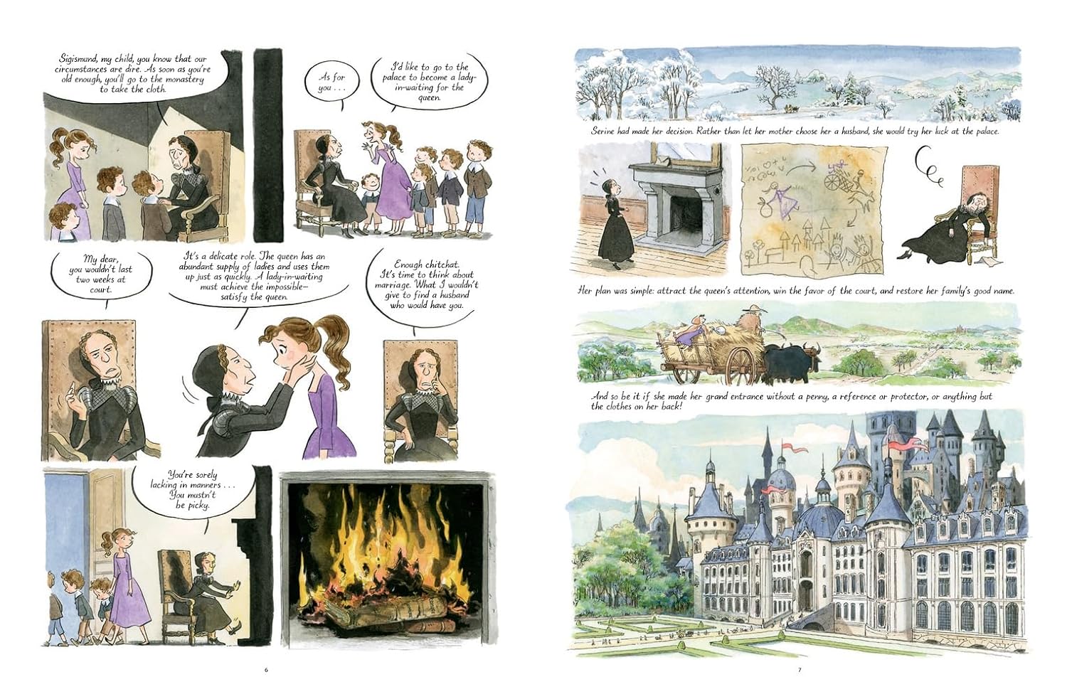 Serine is a poor but plucky daughter of a sickly nobleman who must make her way in the royal court to avoid being married off once her father dies. Although she is illiterate and owns only one dress, she manages to charm her way into the fickle queen’s good graces—but the royal court is not a kind place for a country bumpkin.