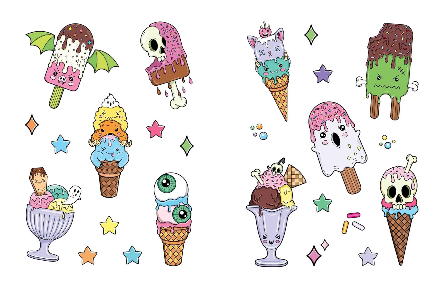 Celebrate with springtime cemetery scenes, ice cream cones with skulls and crossbones, and snowmen covered in spiders with the perfect mash-up sticker book that’s sure to please even the most tortured soul.