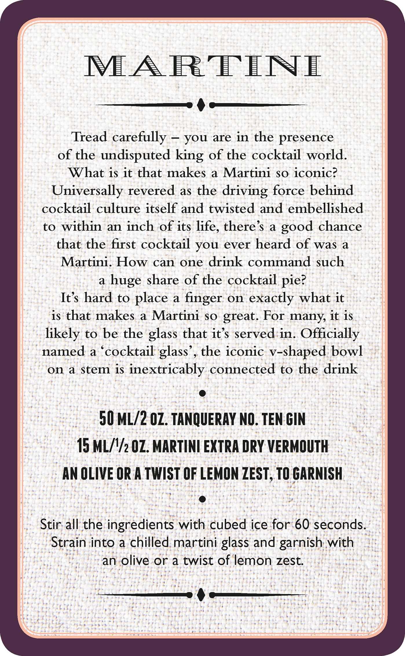 Preparing a first-class cocktail relies upon a deep understanding of its ingredients and the delicate alchemy of how they work together. Nobody understands this better than Tristan Stephenson – drinks industry consultant, bar owner, restaurateur and author of five books on the subject of drinks and drinking. Here he offers expert advice on the fundamentals of home mixology and explains the practical cocktail-making techniques that every keen home barman should master, from how to build a drink in a glass to preparing a variety of garnishes. Next Tristan showcases a selection of classic and modern cocktails on a deck of 4-colour laminated recipe cards included in the pack. The intriguing origin of each drink is explained and the colourful historical characters who inspired or created them are introduced. Recipes include drinks with gin, rum, tequila, whiskey and brandy bases and you’ll find familiar classics such as the Manhattan, Negroni and Martini, discover lesser known vintage gems including the Martinez and Aviation and how to perfect modern favourites the Espresso Martini and Mojito. Also included is a cocktail jigger – the essential piece of cocktail-making kit for any enthusiast.
