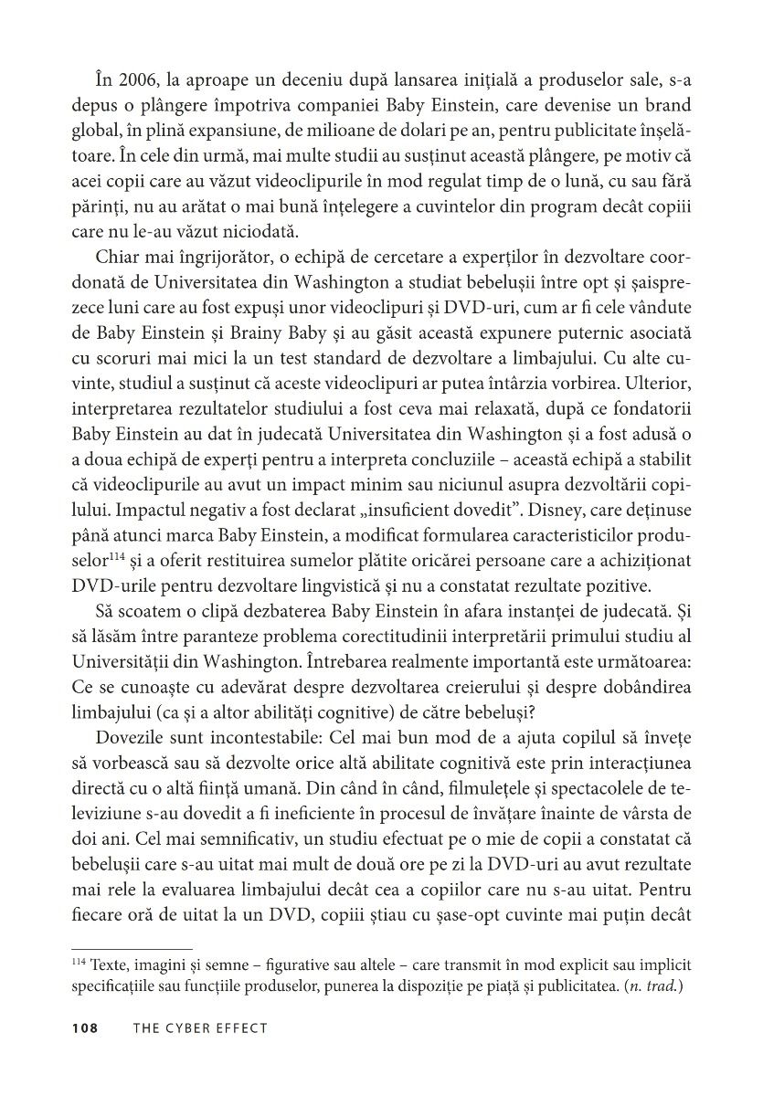 În The Cyber Effect, dr. Mary Aiken – una dintre specialistele de renume mondial în domeniul cyberpsihologiei şi „creierul din spatele serialului CSI: Cyber” (Daily Telegraph) – explică ce impact are asupra noastră mediul online, cum funcţionează şi ce putem face pentru a ne feri de efectele nocive ale acestuia. Lucrarea de faţă conţine exemple reale, relatări care vă vor deschide ochii şi statistici surprinzătoare, fiind în acelaşi timp un ghid fascinant către un viitor nou, în care nu este încă prea târziu pentru a lua atitudine.