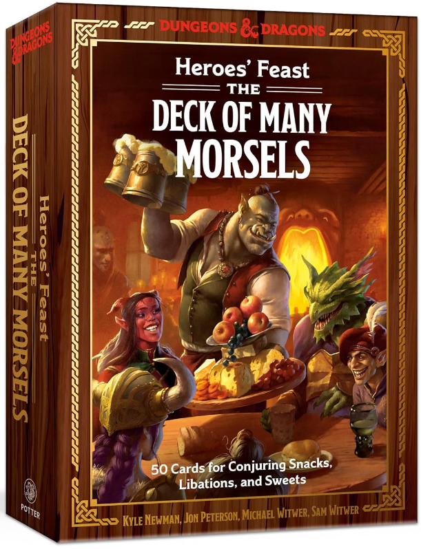 Sip and snack your way through the realms of Dungeons & Dragons with these 50 recipe cards from the New York Times bestselling authors of the Heroes' Feast cookbooks. This oversize deck of 50 cards with photographs brings to life festive foods and drinks that span the vast multiverse of Dungeons & Dragons—culled from the menus of taverns and markets to the recipe books of halflings and night hags.