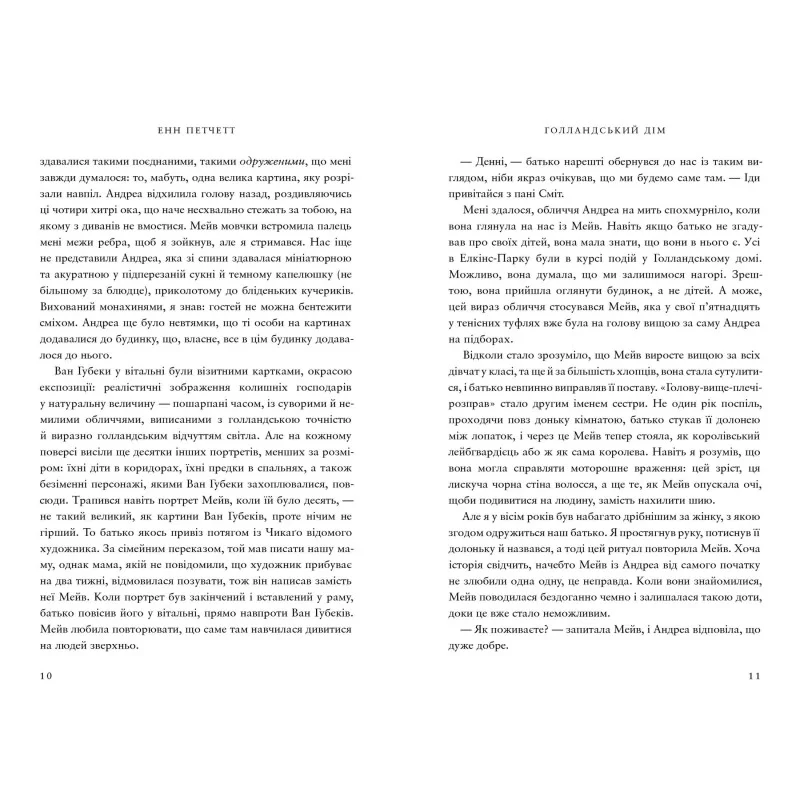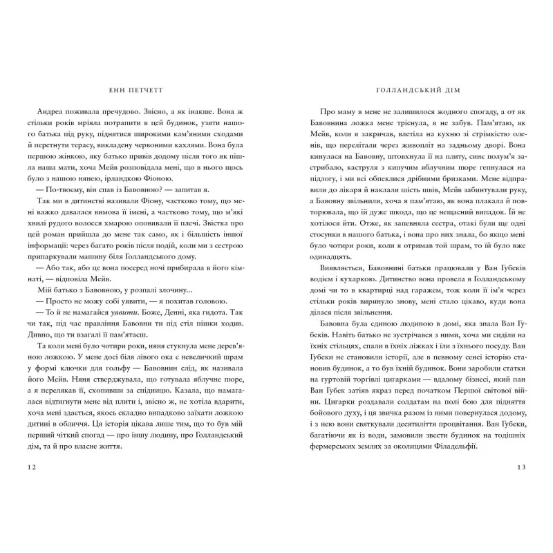 «Голландський дім» — це історія втраченого раю, яка ставить непрості запитання про любов, самопожертву і прощення, про те, ким ми є і ким хочемо себе бачити. Ви можете смакувати цей роман поволі чи прочитати його якнайшвидше, щоб дізнатись, чим же все закінчилося, але Денні і Мейв однаково залишаться з вами надовго.