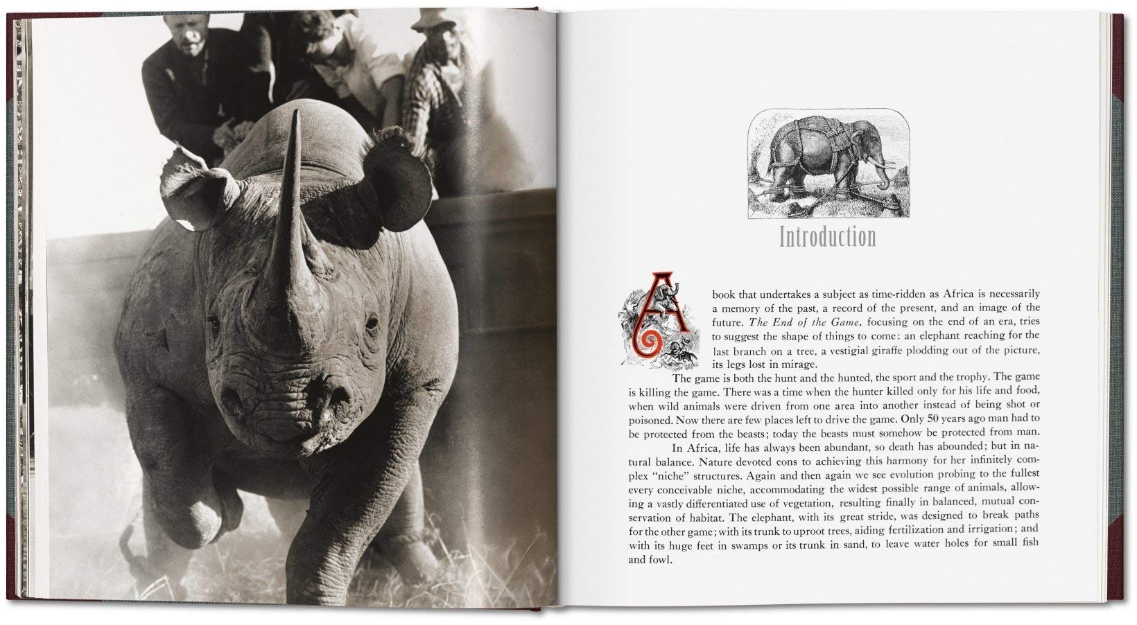 A landmark publication on Africa, The End of the Game combines Peter Beard's salient text and remarkable photographs to document the overpopulation and starvation of tens of thousands of elephants, rhinos, and hippos in Kenya's Tsavo lowlands and Uganda parklands in the 1960s and '70s.
