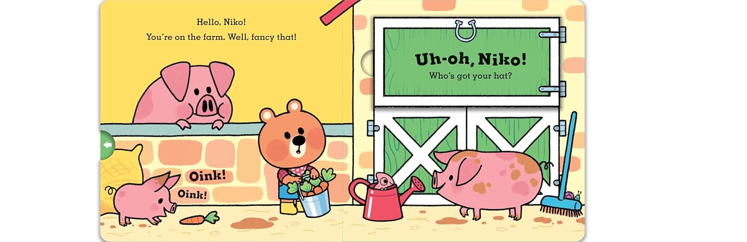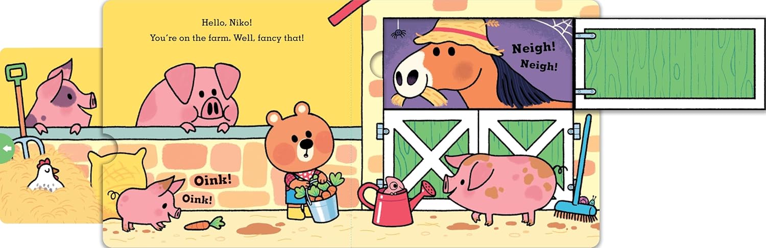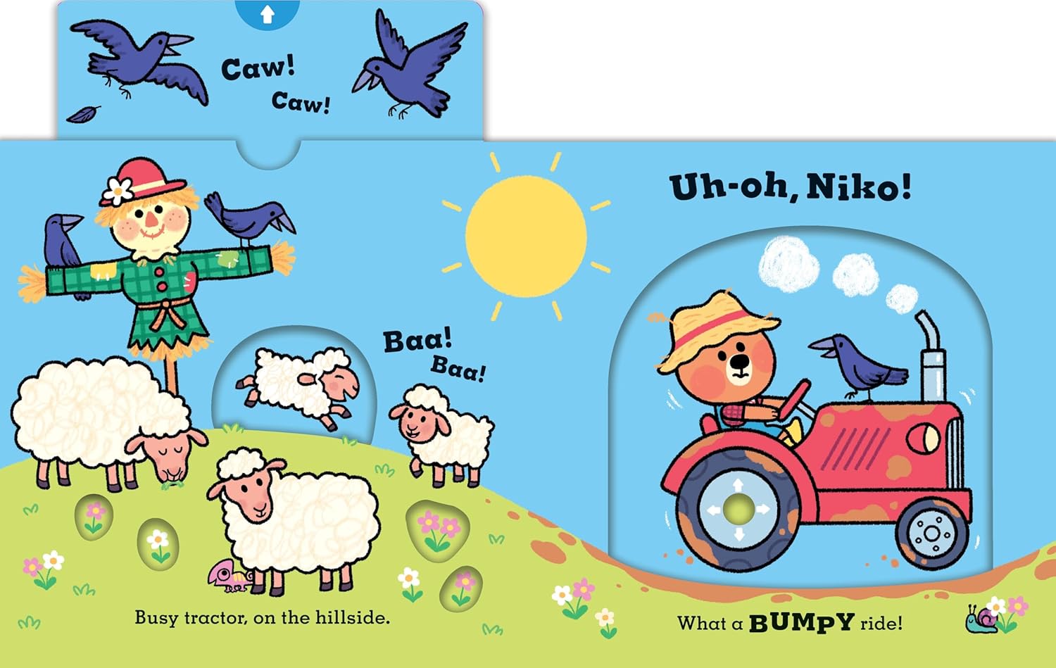 Help little Niko feed the animals, ride a tractor and waddle with the ducklings in this sturdy, interactive board book packed with push-and-pull sliders and flaps.