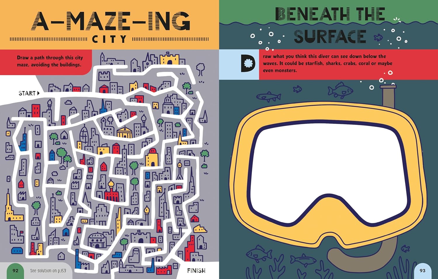 • The perfect size to fit into your hand luggage or backpack so you can easily dip in and out of the games, brainteasers, and drawing challenges