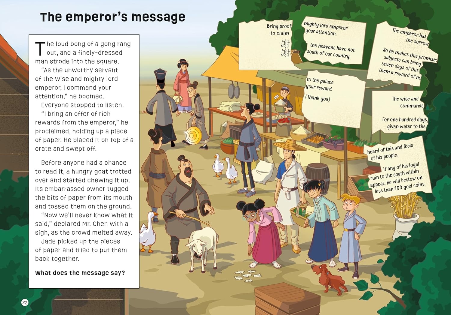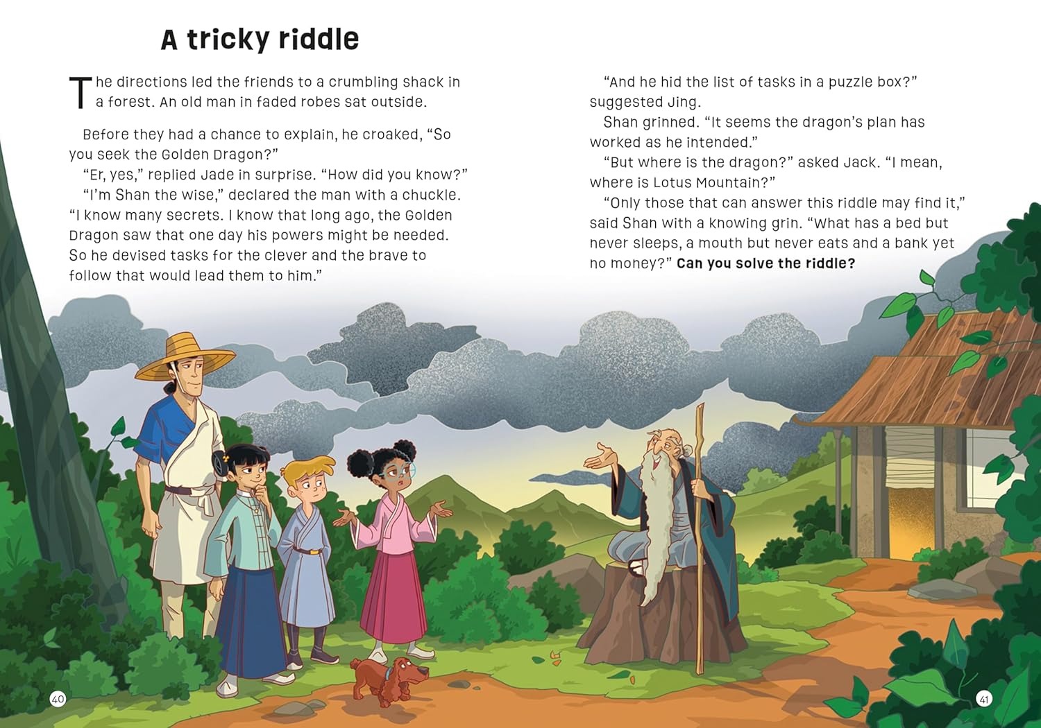 Lots of brain-teasing puzzles stand between them and their goal, as do a couple of sneaky tricksters. Who will find the dragon first and claim their reward at the Emperor's palace?