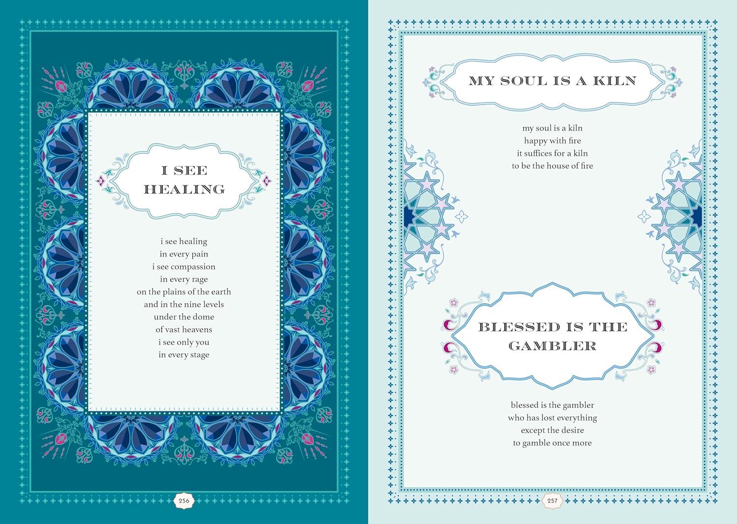 - A carefully curated selection of over 350 timeless Rumi poems, including "In Every Breath," "Find Yourself a Friend," and "I See Healing," all masterfully translated by Iranian-American architect and writer, Nader Khalili