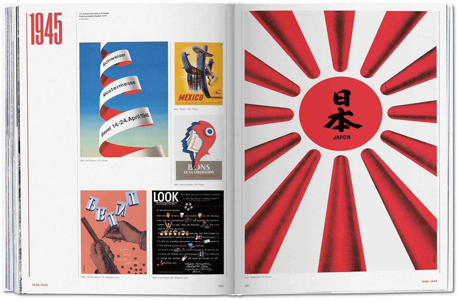 This book is an in-depth history of graphic design from the end of the 19th century to the ’50s. It traces the evolution of this creative field from its beginning as poster design to its further development into advertising, corporate identity, packaging, and editorial design. Organized chronologically, the volume features over 2,500 seminal designs from all over the world, 71 of which are profiled in detail besides 61 leaders in the field, including Alphonse Mucha (chocolate advertisements), Edward Johnston (London Underground logo and typeface), El Lissitzky (constructivist graphics), Herbert Matter (photomontage travel posters from Switzerland), Saul Bass (animated opening titles), and A. M. Cassandre (art deco posters).