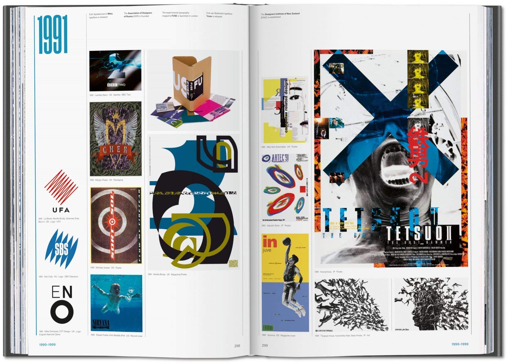 With his sweeping knowledge of the field, author Jens Müller curates the standout designs for each year alongside a running sequence of design milestones. Organized chronologically, each decade is prefaced by a succinct overview as well as a stunning visual timeline, offering a vivid display of the variety of graphic production in each decade as well as the global landscape which it at once described and defined.