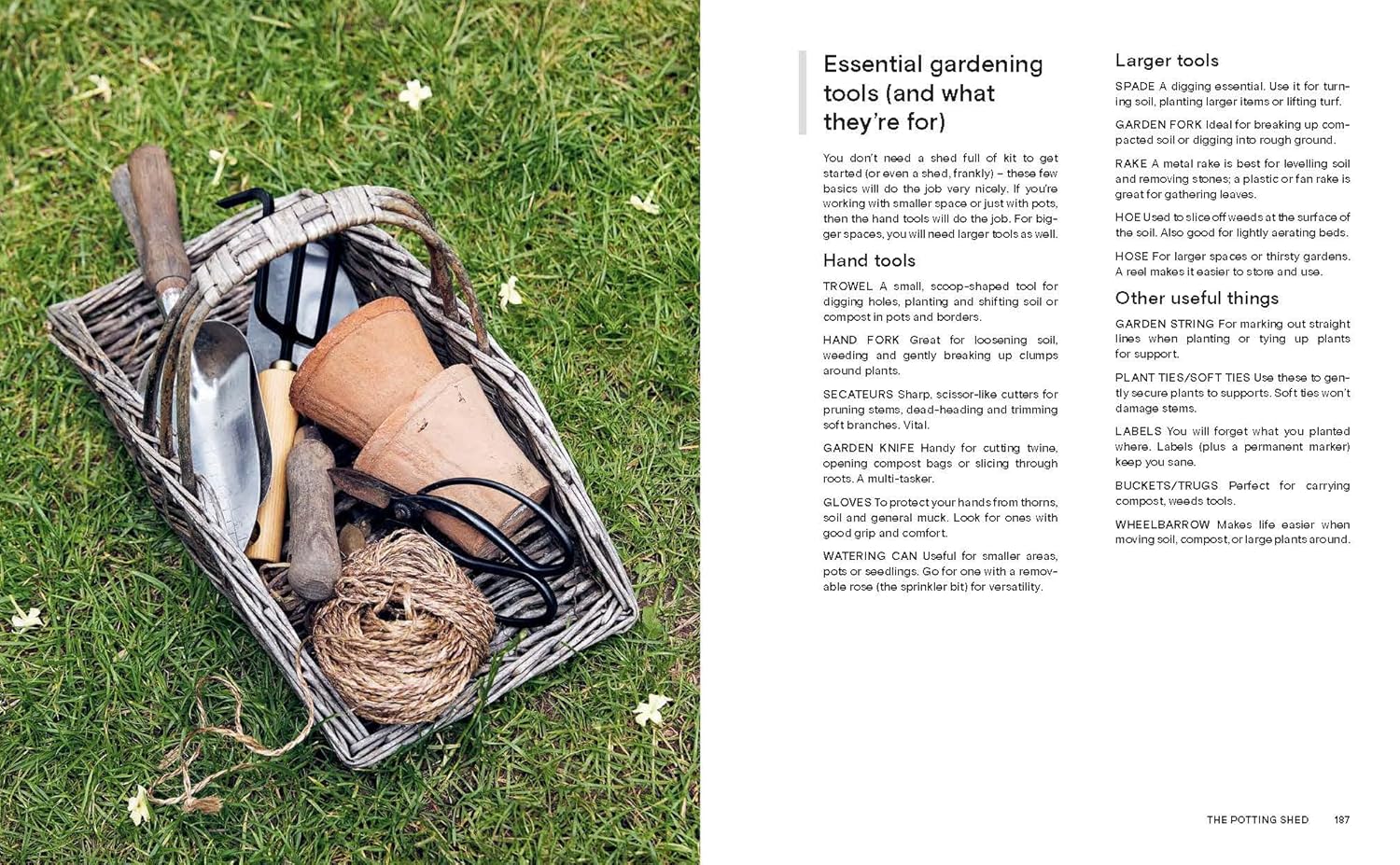 • An ‘essentials’ section of simple how-to’s (sowing seeds, making compost, etc) and the tools/products you’ll need.