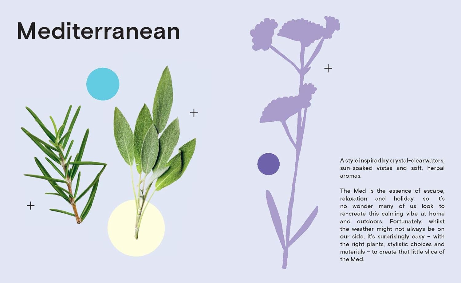 The Instant Garden features style guides for six types of garden style – Mediterranean, English Country, Cool Contemporary, Exotic, Wild/Polinator, Scandi – and will be organised into three main sections: