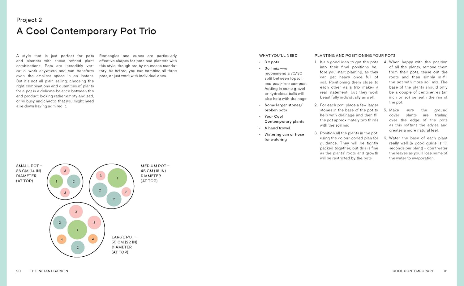 • A practical section explaining the inspiration and design principles for each style and the colour palette and materials, accompanied by two projects – a raised flower bed and a pot trio.