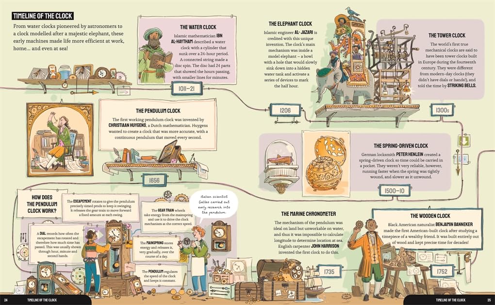 - Beautifully illustrated timelines, showing how creations of today exist because of the long line of inventions and inventors that came before