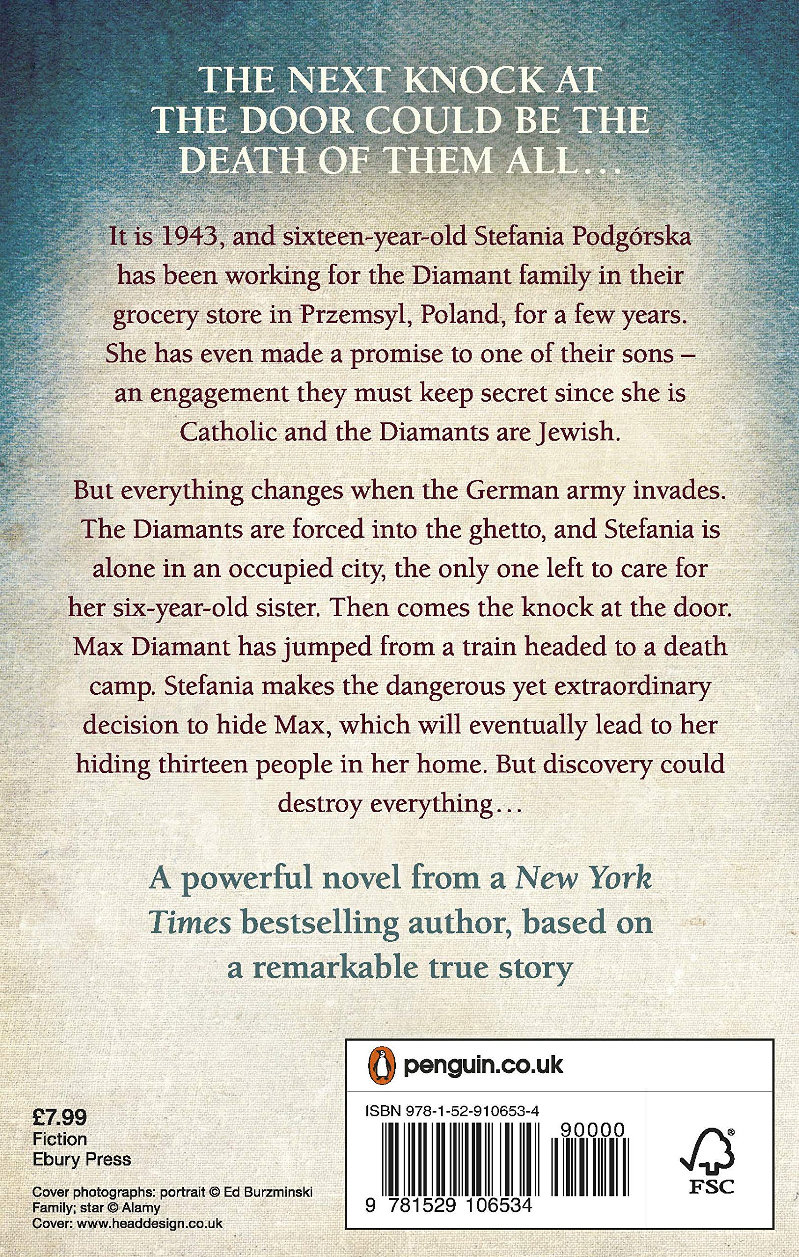 But everything changes when the German army invades Przemsyl. The Diamants are forced into the ghetto, and Stefania is alone in an occupied city, the only one left to care for her six-year-old sister. And then comes the knock at the door. Max Diamant has jumped from the train headed to a death camp. Stefania and Helena make the extraordinary decision to hide Max, and eventually twelve more Jews. Then they must wait, every day, for the next knock at the door, the one that could destroy everything...