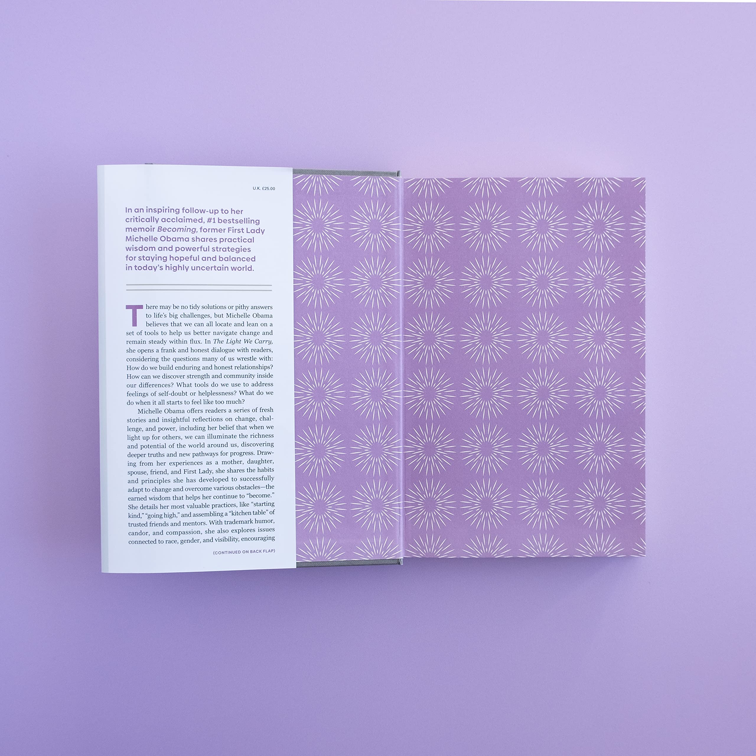 In The Light We Carry, the former First Lady shares her practical wisdom and powerful strategies for staying hopeful and balanced in today's highly uncertain world. A mother, daughter, spouse and friend, she shares fresh stories, her insightful reflections on change and the earned wisdom that helps her continue to "become." With her trademark humour, candour, and compassion, she also explores issues connected to race, gender, and visibility, encouraging readers to work through fear, find strength in community, and live with boldness.