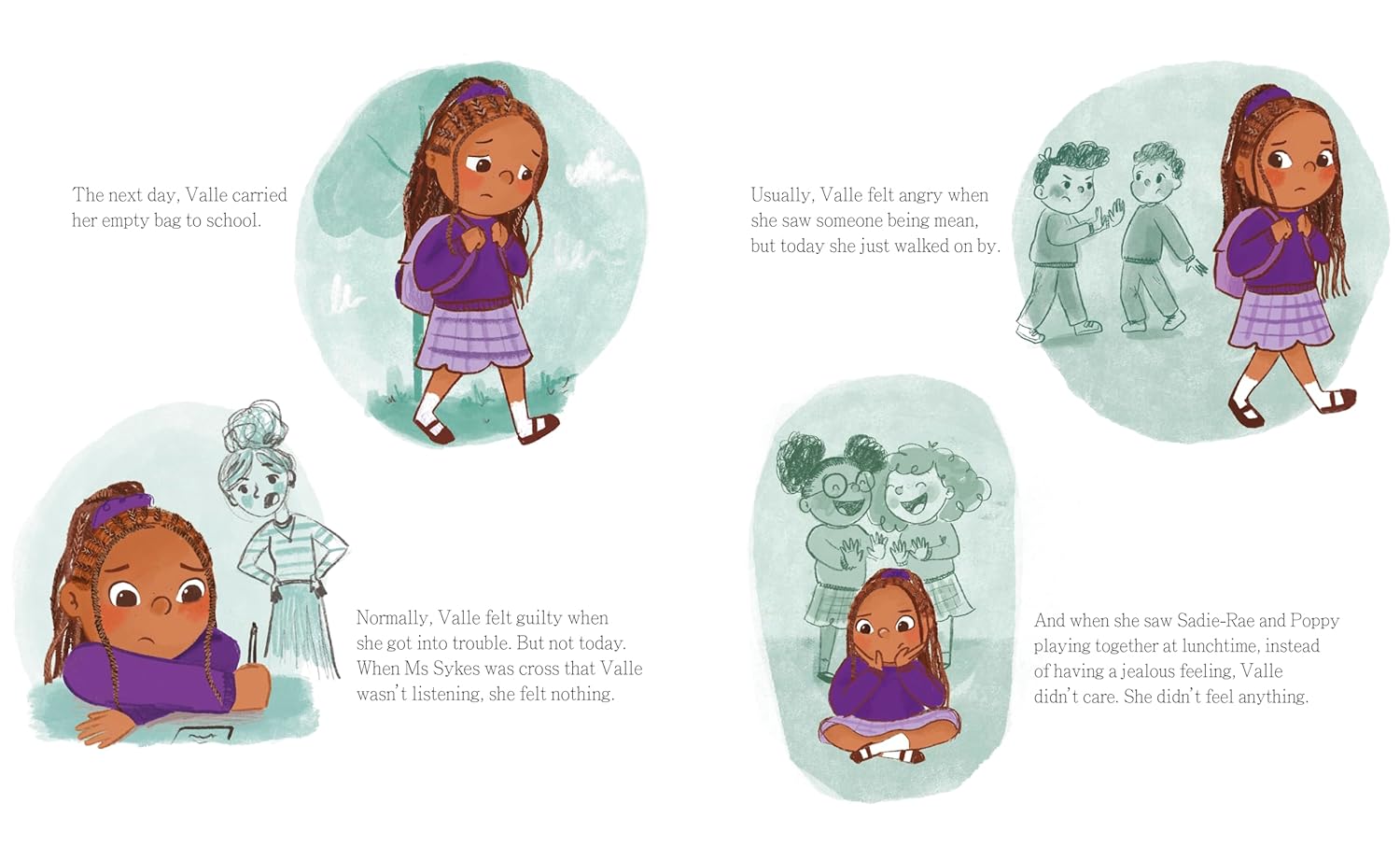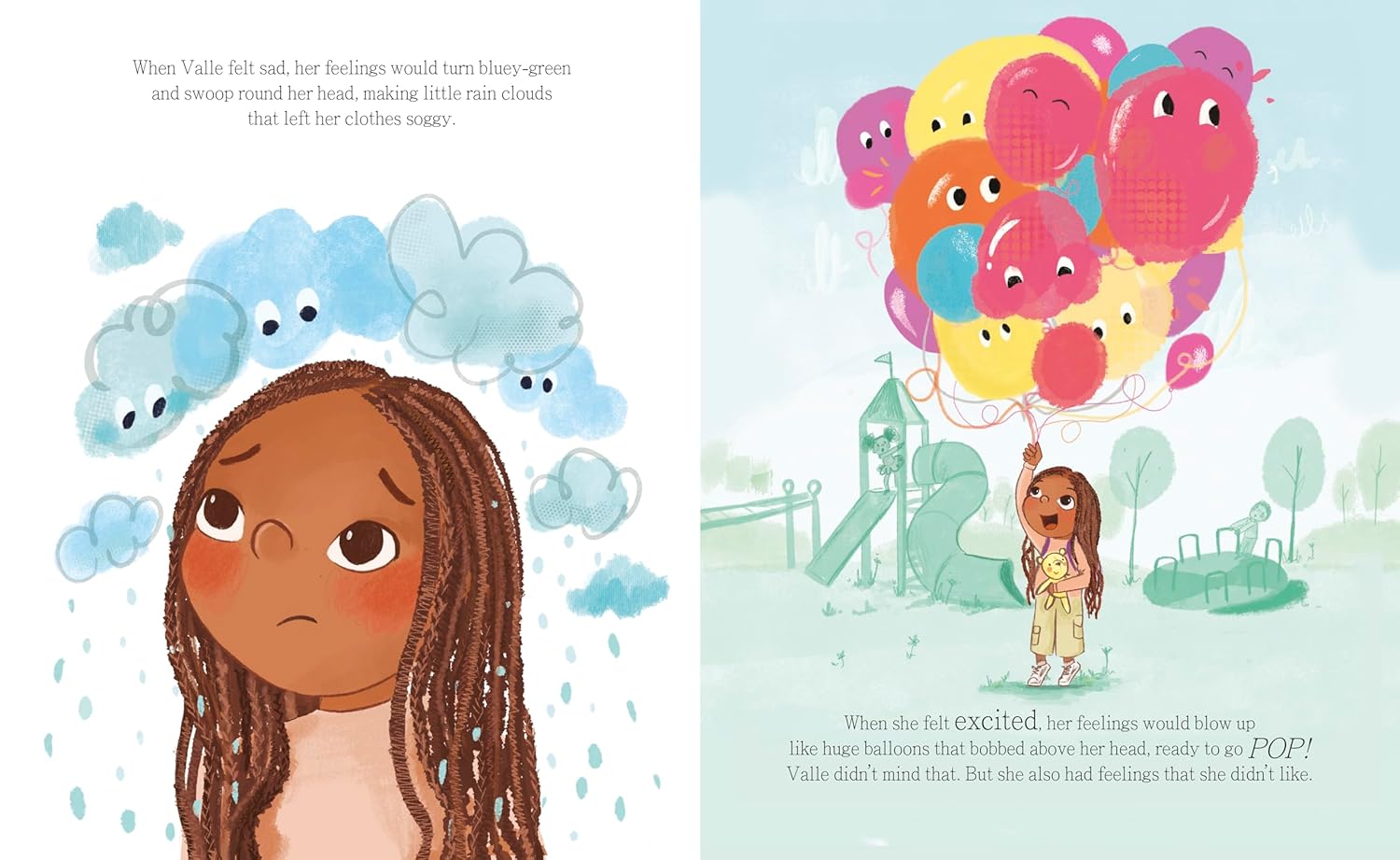 When she's happy her feelings float like red balloons above her head. When she's sad her feelings gather like grey rainclouds. And when she's jealous or angry they blow up like a wild storm.