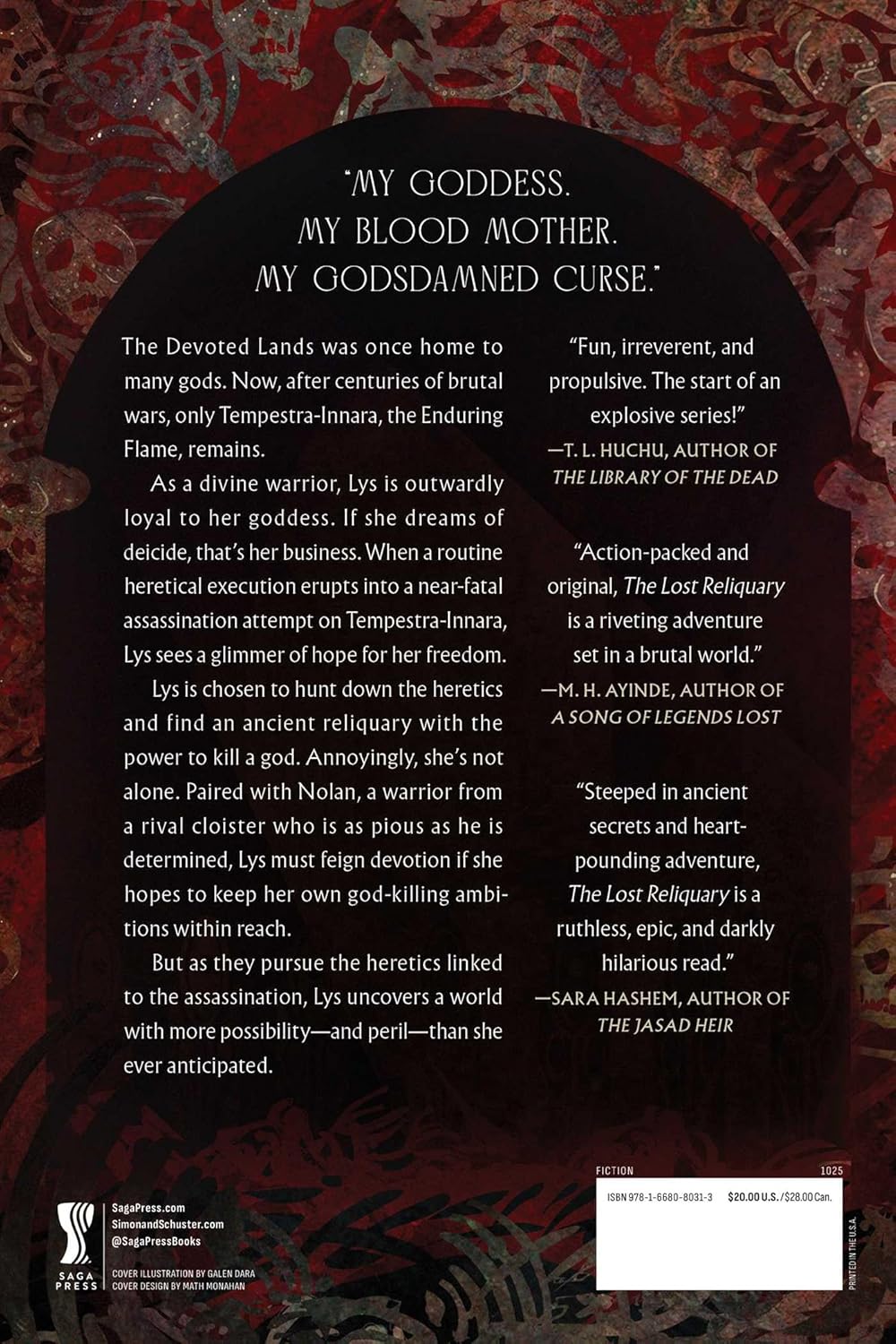 Lys is chosen to hunt down the heretics and find an ancient reliquary with the power to kill a god. Annoyingly, she's not alone. Paired with Nolan, a warrior from a rival cloister who is as pious as he is determined, Lys must feign devotion if she hopes to keep her own god-killing ambitions within reach.