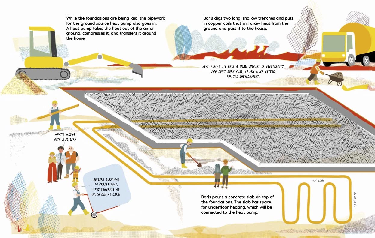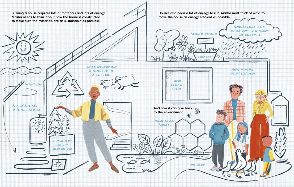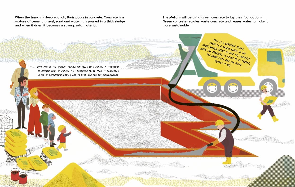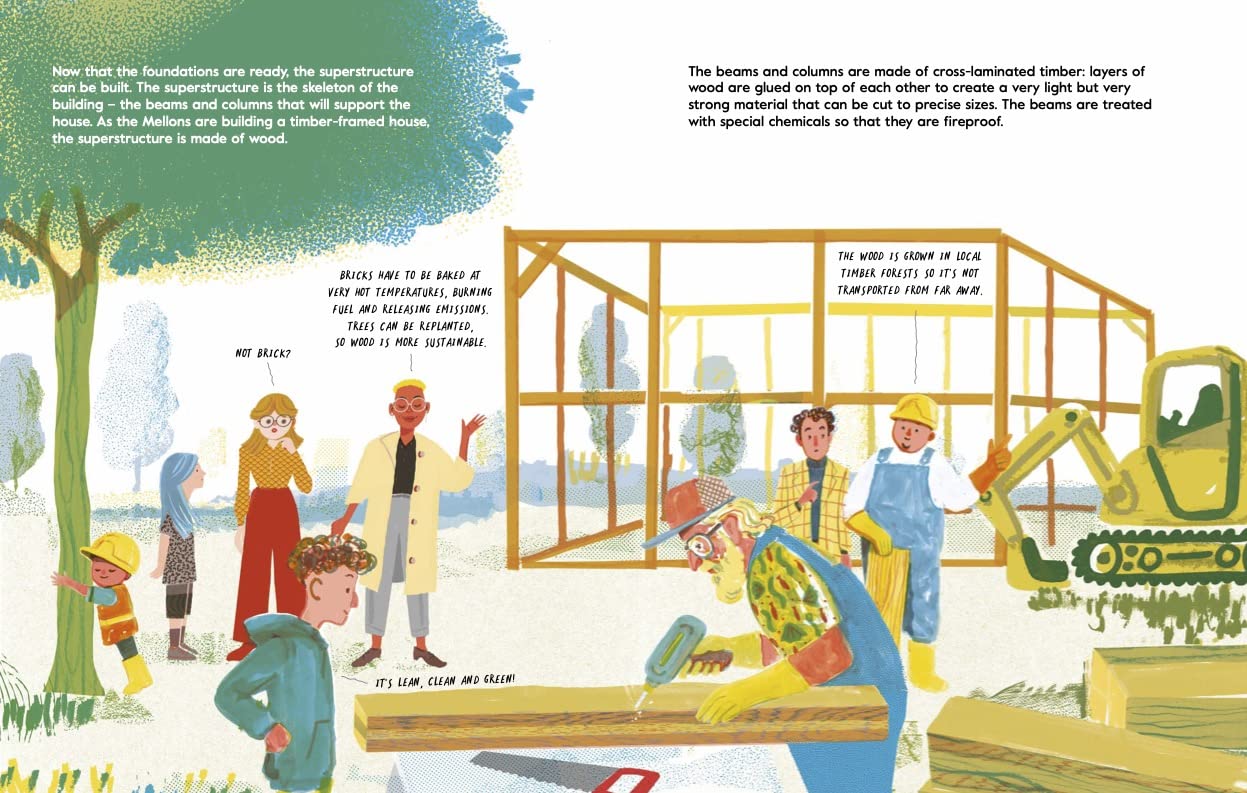 The Mellons Build a House is a hugely enjoyable picturebook that takes the reader step-by-step through house design and build. Heat pumps, solar panels, insulation and rainwater harvesting are all clearly explained and brought to life in Nik Neves's warm, inclusive illustrations. A timely and essential read for aspiring young architects and construction-enthusiasts.