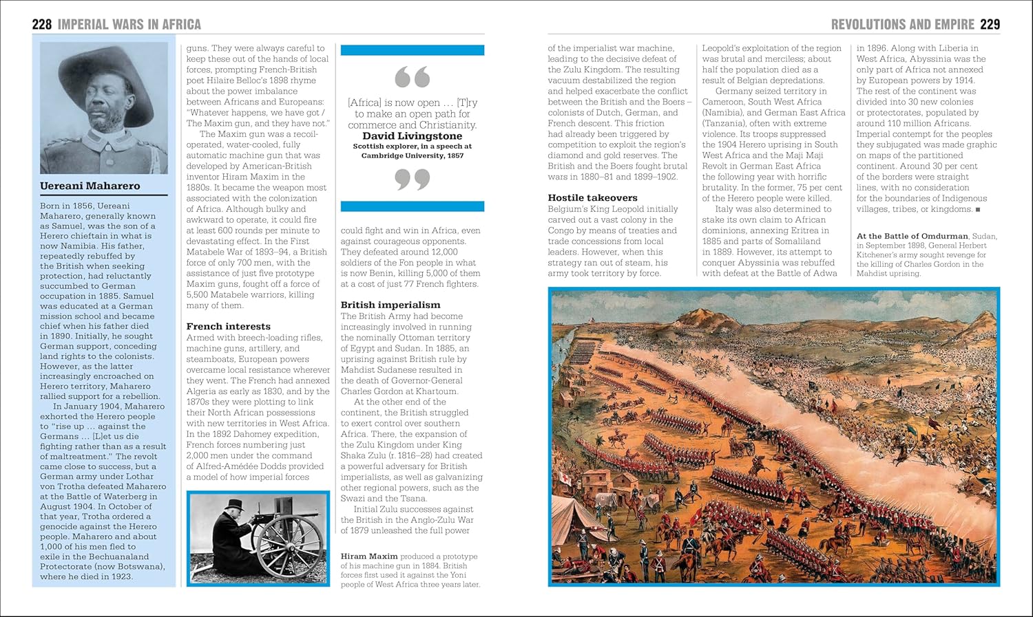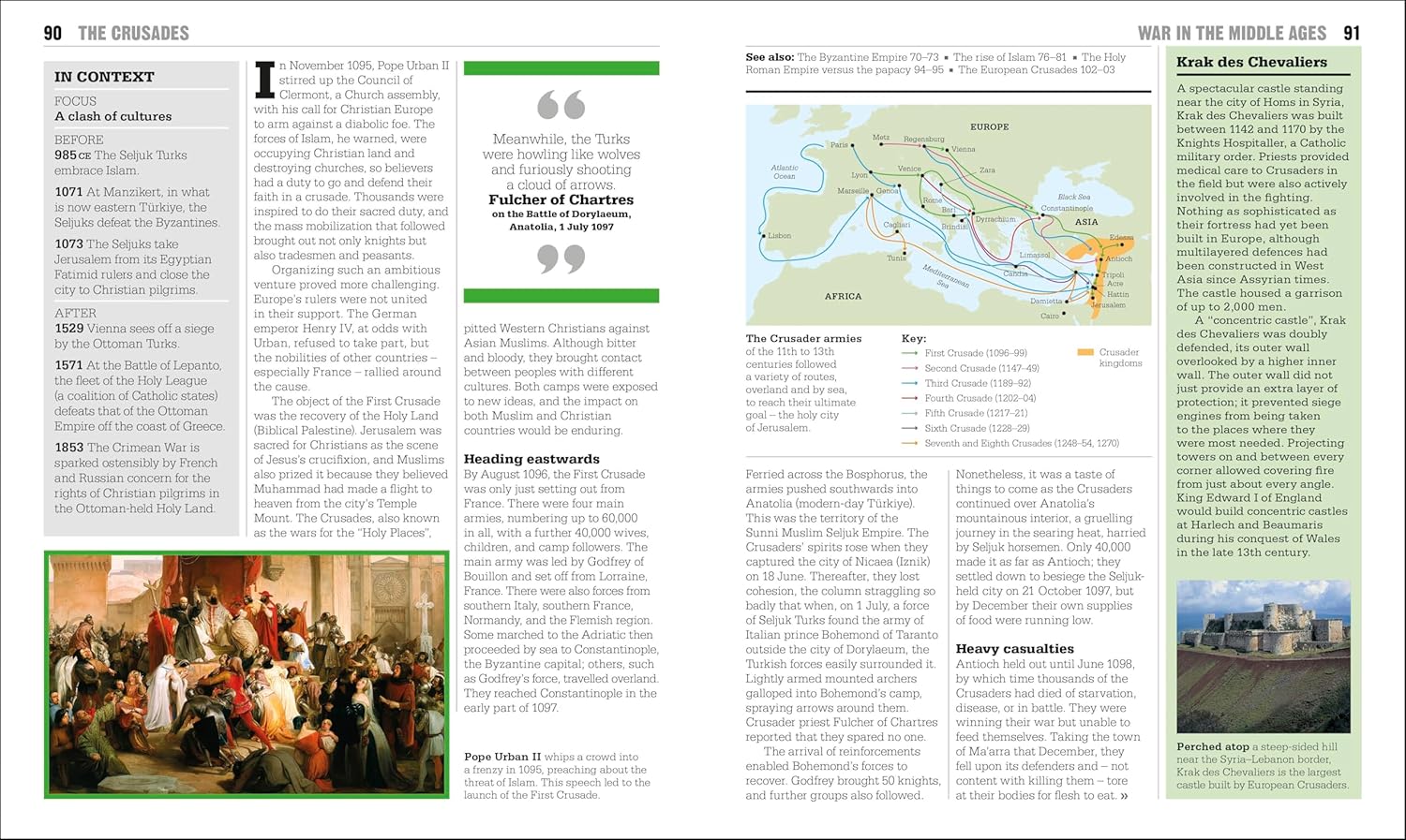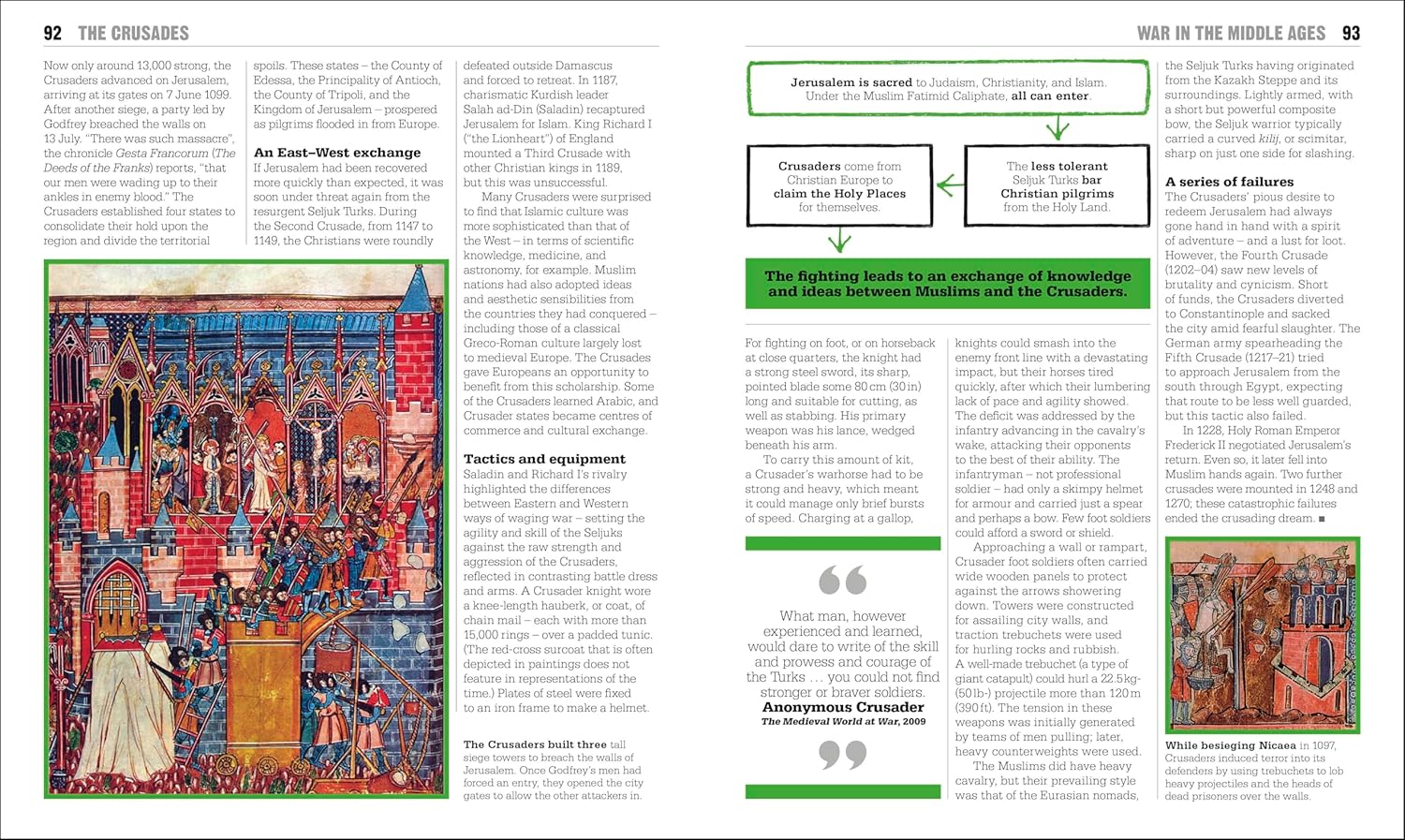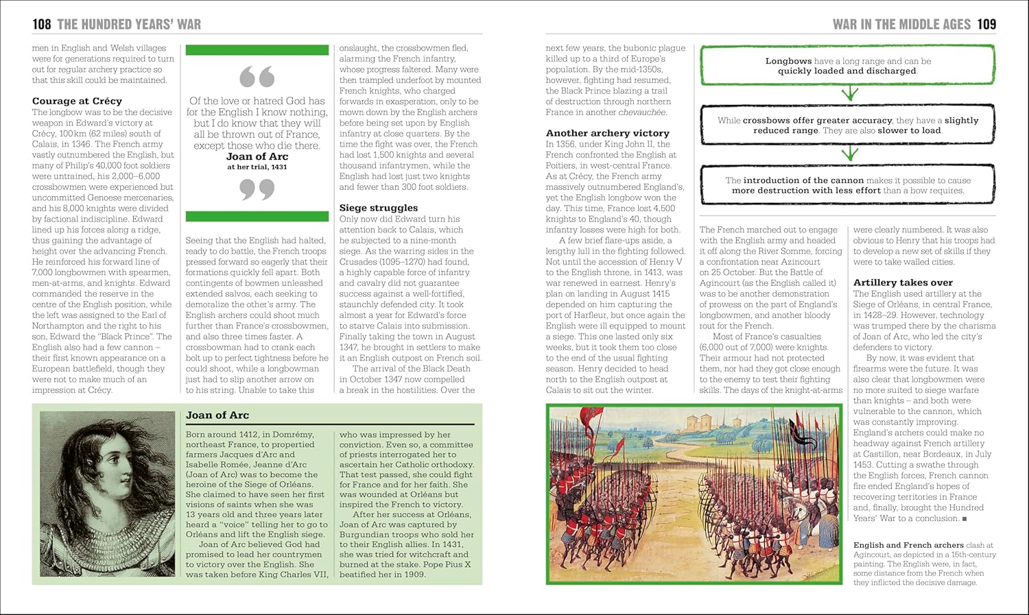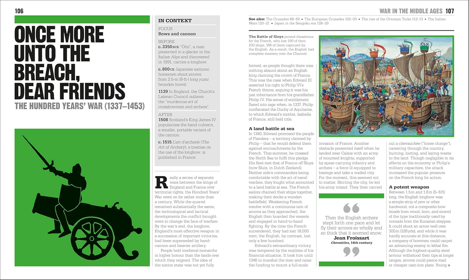 Tracing the epic 5,000-year story of warfare from the earliest battles to the War on Terror, The Military History Book explores and explains the causes and consequences of each, offering a new angle on military history. Individual entries analyse the key social and political driving forces, the arms and armaments, and the technologies and tactics of war over the last 7,000 years – from the tactics of early infantry and siegecraft to the rise of naval combat steel, steam, and shellfire, and from trench warfare and aerial dogfights to chemical weapons and cyber warfare.