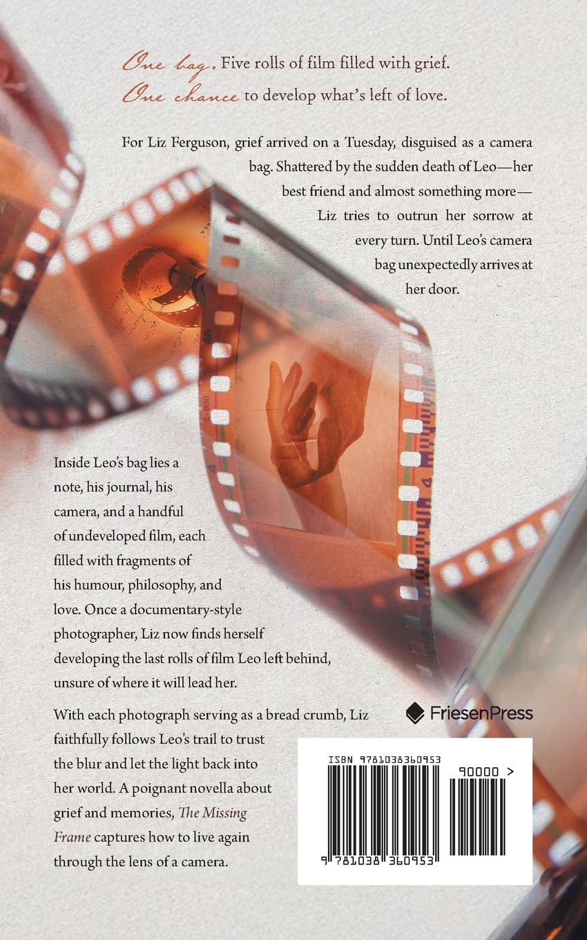 With each photograph serving as a bread crumb, Liz faithfully follows Leo's trail to trust the blur and let the light back into her world. A poignant novella about grief and memories, The Missing Frame captures how to live again through the lens of a camera.