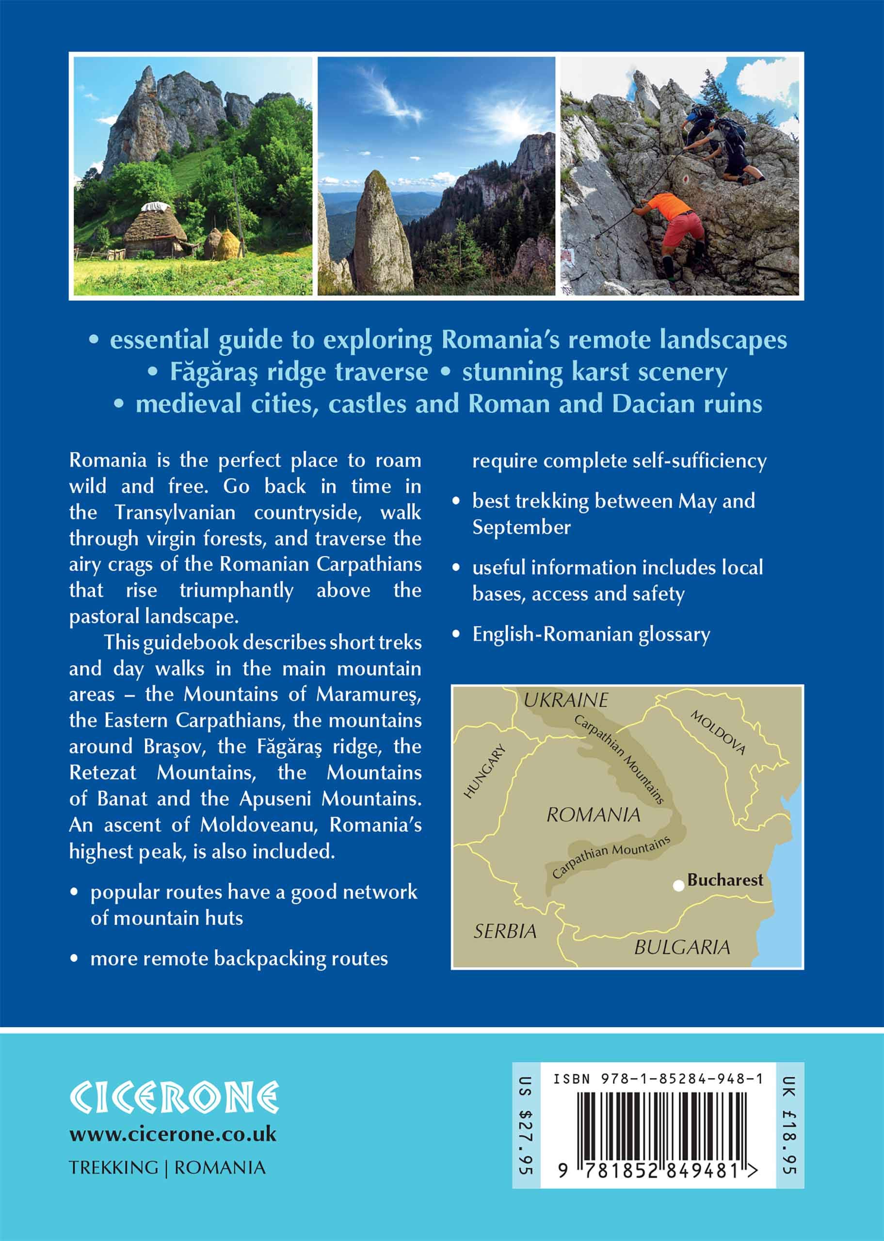 This guide describes 27 short treks of 2-6 days and 10 day walks in the mountains of Romania. Although there is a slight focus on Transylvania, most of the main massifs are included, with chapters covering the Mountains of Maramures, the Eastern Carpathians, the mountains around Brasov, the Fagaras, the region between the Olt and the Jiu, the Retezat, the mountains of Banat and the Apuseni. Also included is an ascent of Moldoveanu, Romania's highest peak at 2544m.