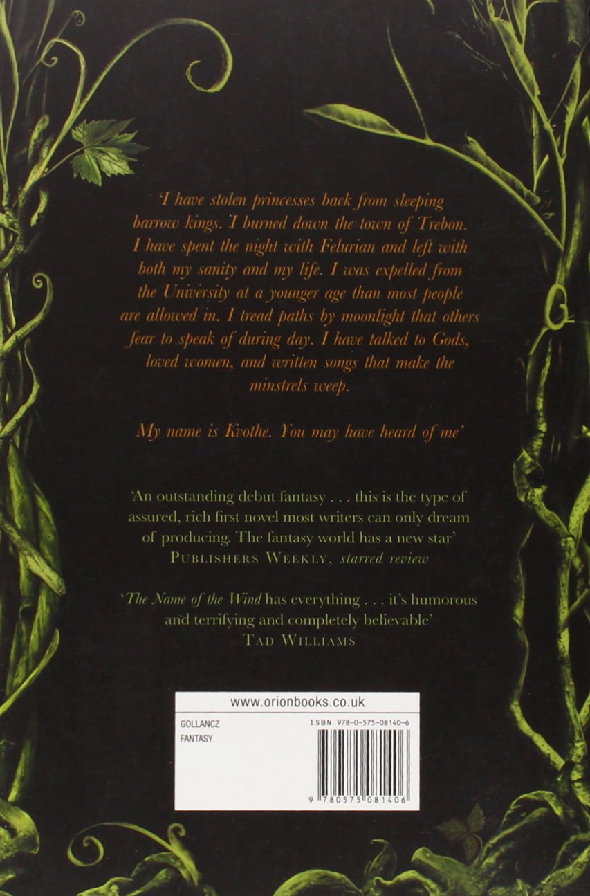 'I have stolen princesses back from sleeping barrow kings. I burned down the town of Trebon. I have spent the night with Felurian and left with both my sanity and my life. I was expelled from the University at a younger age than most people are allowed in. I tread paths by moonlight that others fear to speak of during day. I have talked to Gods, loved women, and written songs that make the minstrels weep.