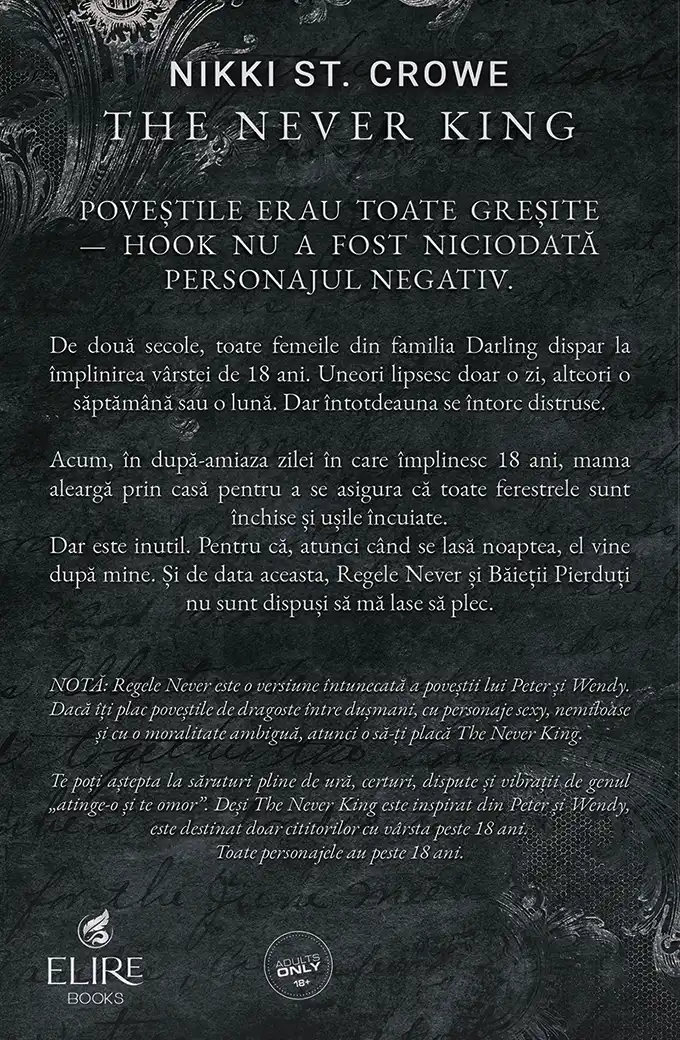 The Never King este o versiune întunecată a poveștii lui Peter și Wendy. Dacă îți plac poveștile de dragoste în care dușmanii devin iubiți, cu personaje sexy, nemiloase și cu o moralitate ambiguă, atunci îți va plăcea The Never King and the Lost Boys.