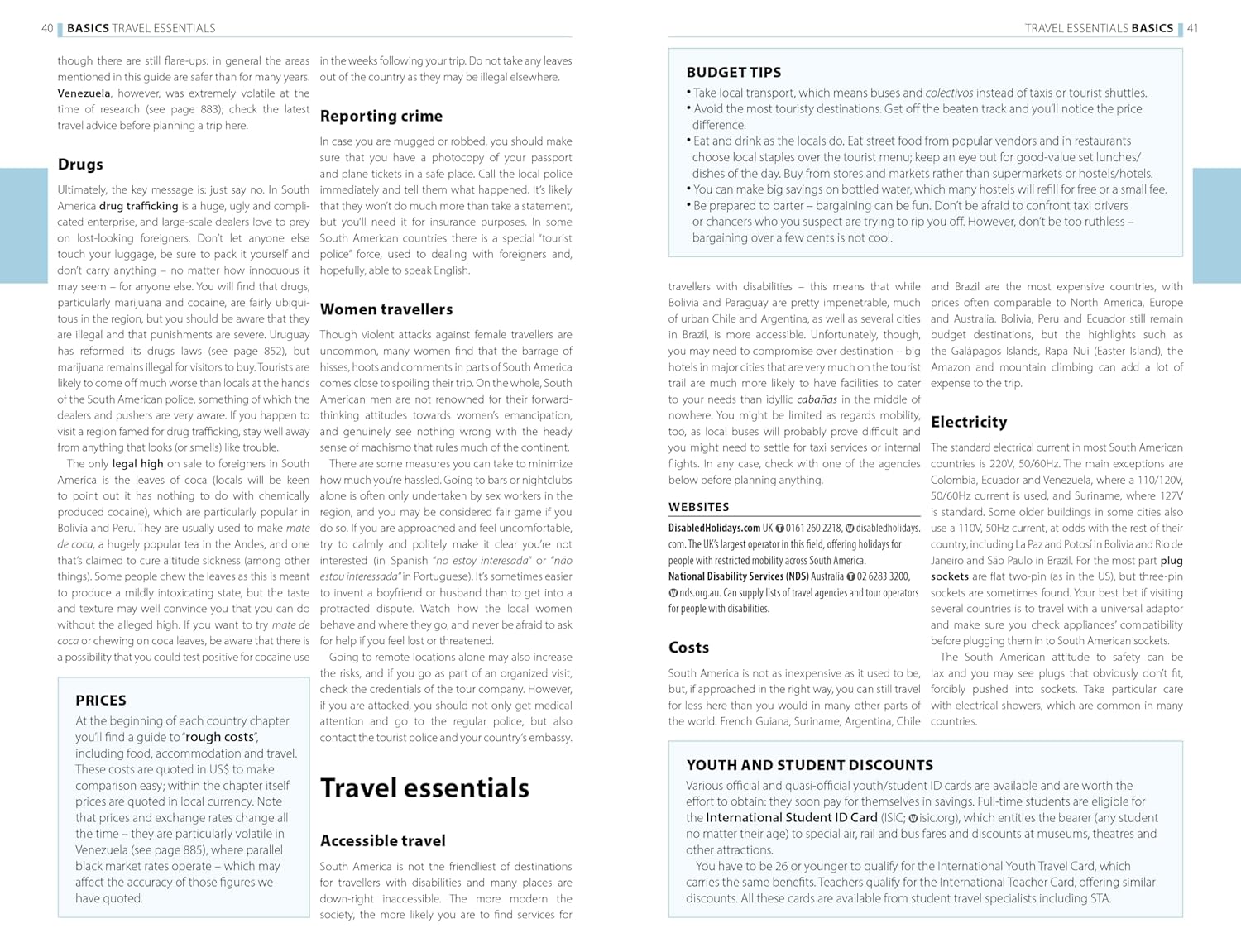 - Practical information - how to get to South America on a Budget, all about public transport, food and drink, shopping, travelling with children, sports and outdoor activities, tips for travellers with disabilities and more