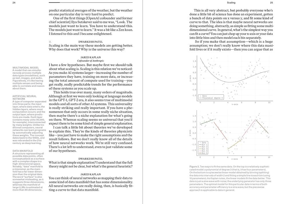 The book is also a standalone introduction to the technology. It includes over 170 definitions and visualizations, explanations of technical points made by guests, classic essays on the theme from other writers, and unpublished interviews with Open Philanthropy research analyst Ajeya Cotra and Anthropic cofounder Jared Kaplan.