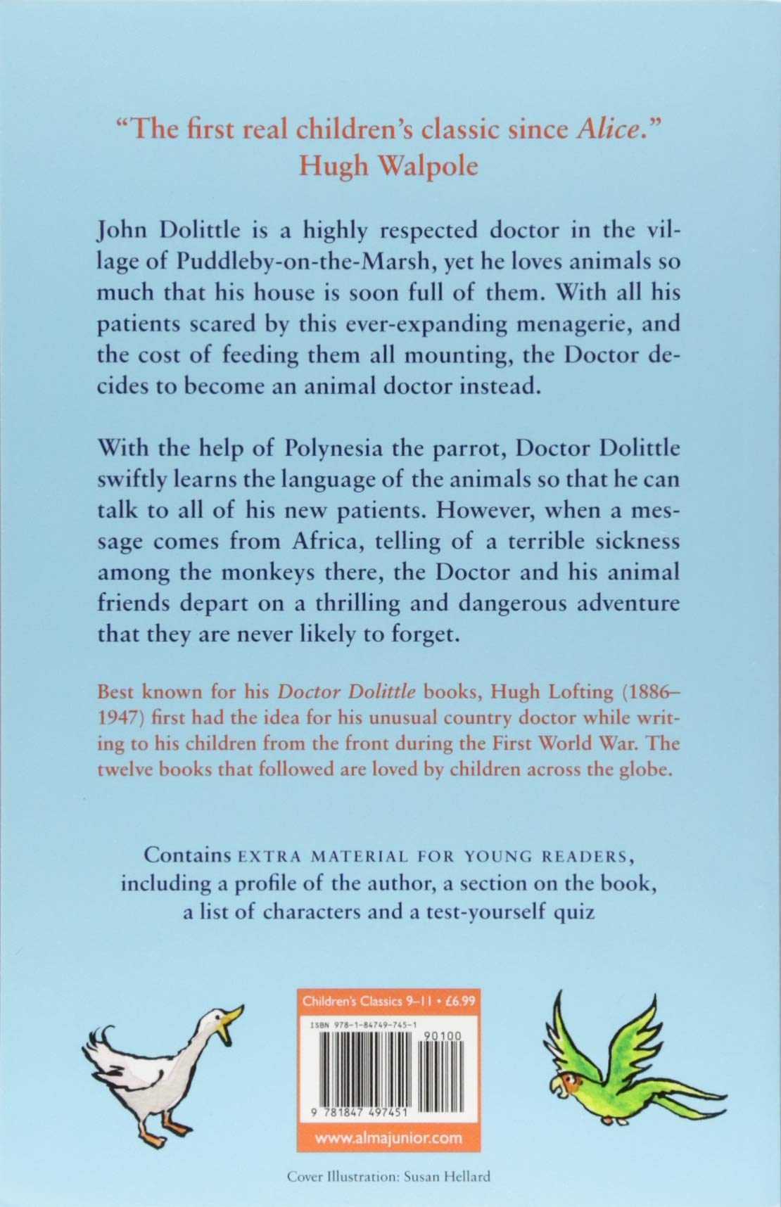 John Dolittle is a highly respected doctor in the village of Puddleby-on-the-Marsh, yet he loves animals so much that his house is soon full of them. With all his patients scared away, and the expense of feeding his menagerie mounting, a friend suggests that the Doctor become a vet instead. With the help of Polynesia the parrot, Doctor Dolittle swiftly learns the language of the animals so that he can talk to all of his new patients. However, when a message comes from Africa, telling of a terrible sickness among the monkeys there, the Doctor and his animal friends depart on a thrilling and dangerous adventure that they are never likely to forget. This new edition contains original illustrations and extra material for young readers including a glossary and a quiz-yourself section.