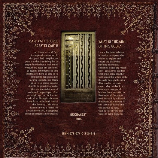 Îmi doresc ca ea să fie o invitație adresată oricui își dorește să iasă la o plimbare pentru a admiră străzile pline de un parfum distinct al mai multor veacuri. De aceea am considerat că această carte trebuie să vină însoțită de o hartă cu care să fie mai ușoară deplasarea prin locurile ilustrate. Îmi doresc să fie și un mesaj transmis dincolo de granițele orașului, țării, continentului, care să vorbească despre faptul că nu s-a reușit, așa cum încă se mai crede, să se distrugă chiar toate locurile cu încărcătură istorică din București. Identitatea noastră ca oraș, a rămas vie și va fi mereu aici, în așteptarea oricui își dorește să ne cunoască.