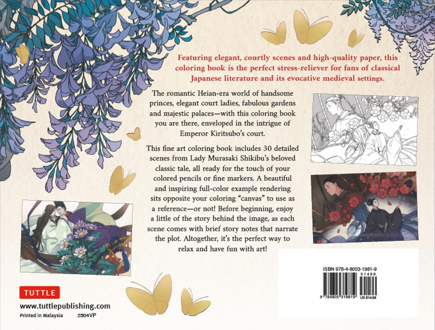 Thirty beautiful scenes from Japan's greatest romance novel—with full-colour reference images and colouring pages printed on high quality paper!